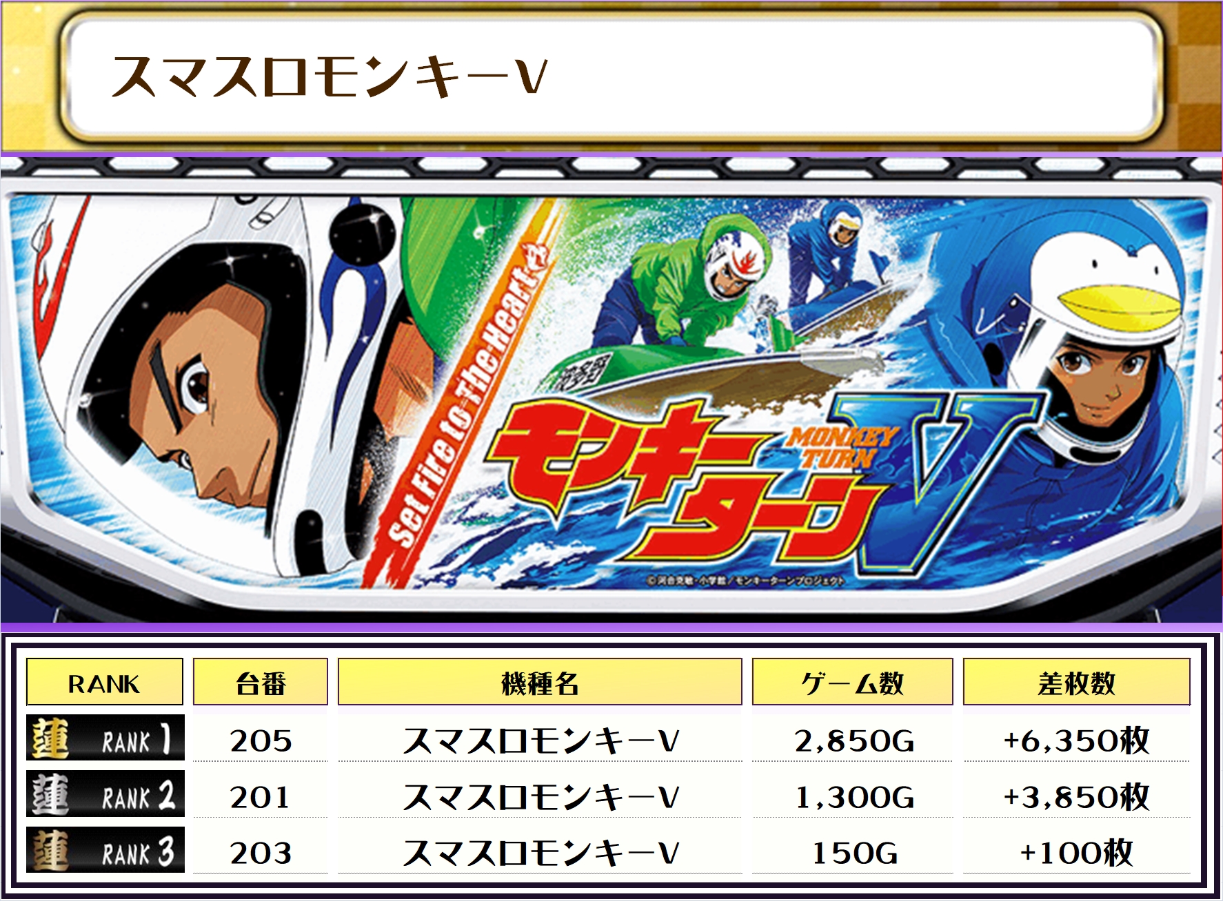 続く2位には【ヴヴヴ2・167番台】の+8,550枚、そして3位には【スマスロモンキーV・205番台】の+6,350枚がランクインっ🏆🏆🏆🏆