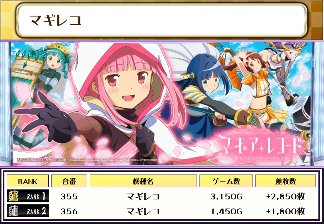 取材当日は、ピックアップしたマイジャグ、ネオアイム、さらにマギレコはあいにく不発だった台もよく回されていました✨
