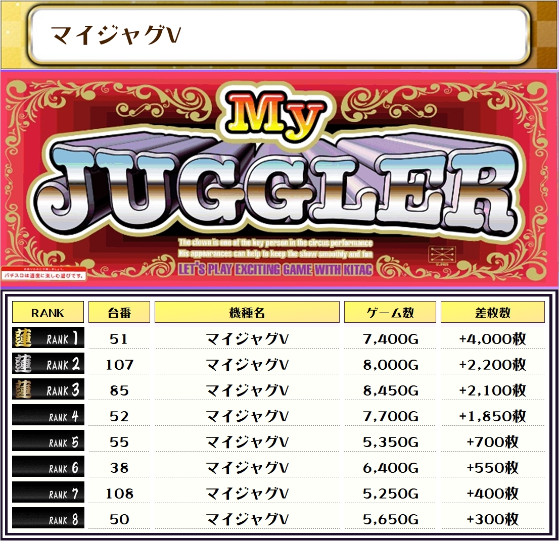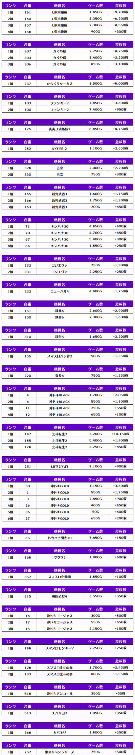 ちなみに、ピックアップしたのは稼働が好調で、優秀台が多かったと思われる機種になります👍