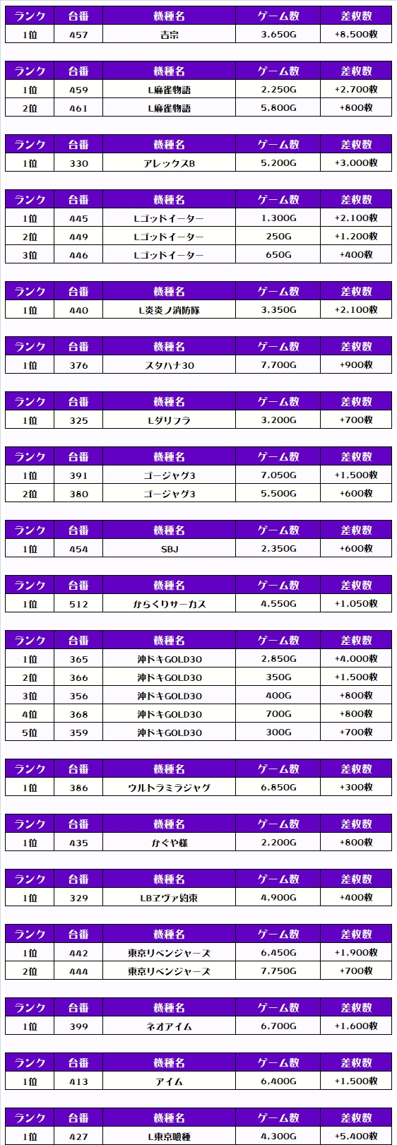 それでは、機種別差枚ランキングをチェックしますか❗️