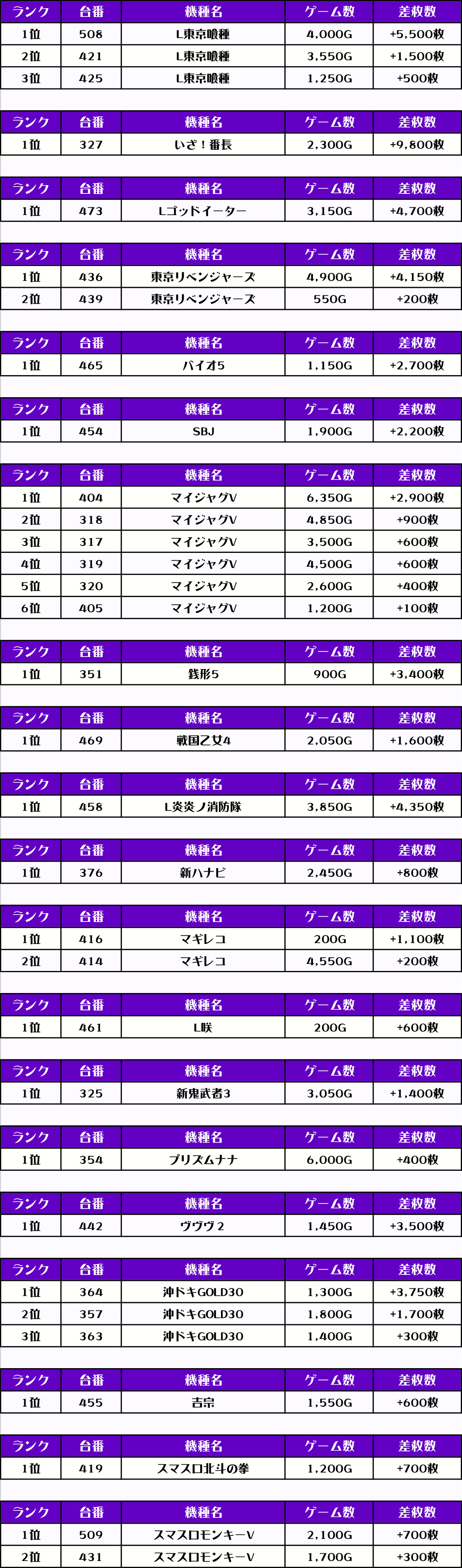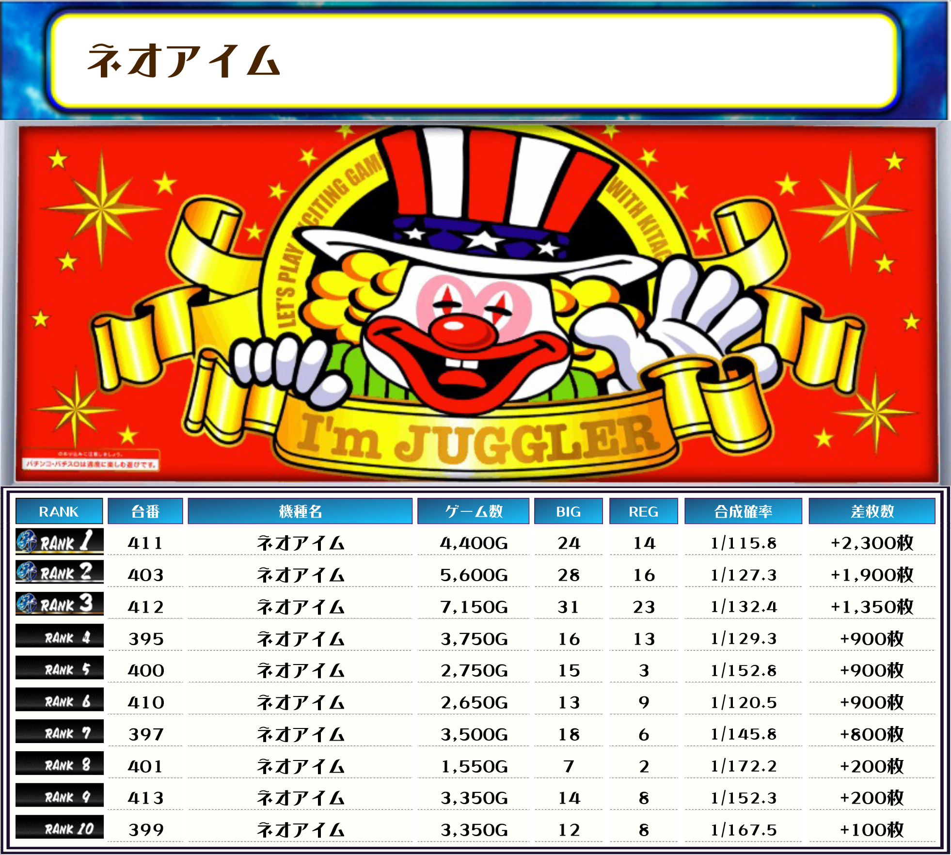 最後に、この日の店内差枚ランキングをご覧ください❗️