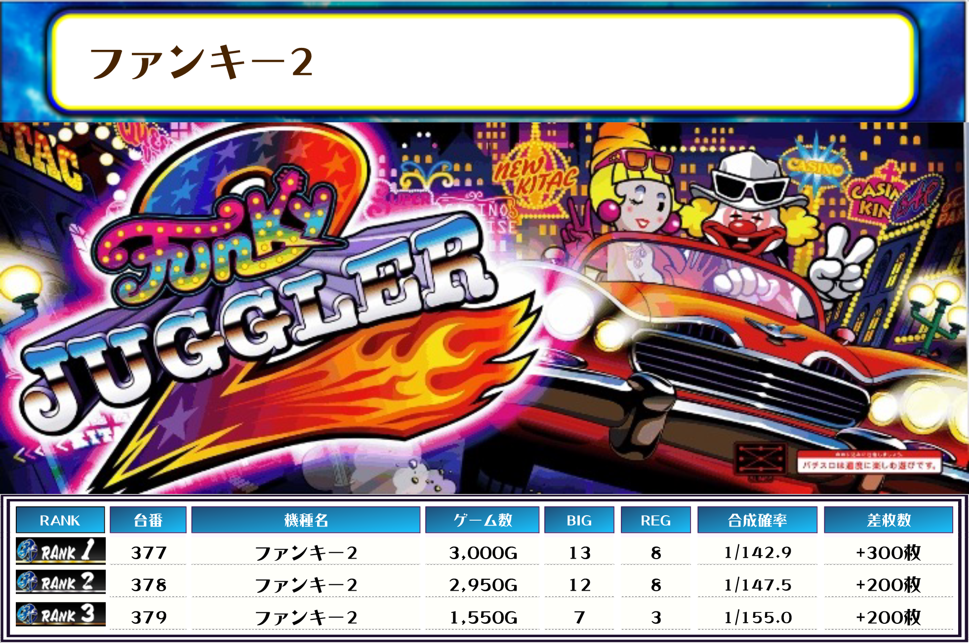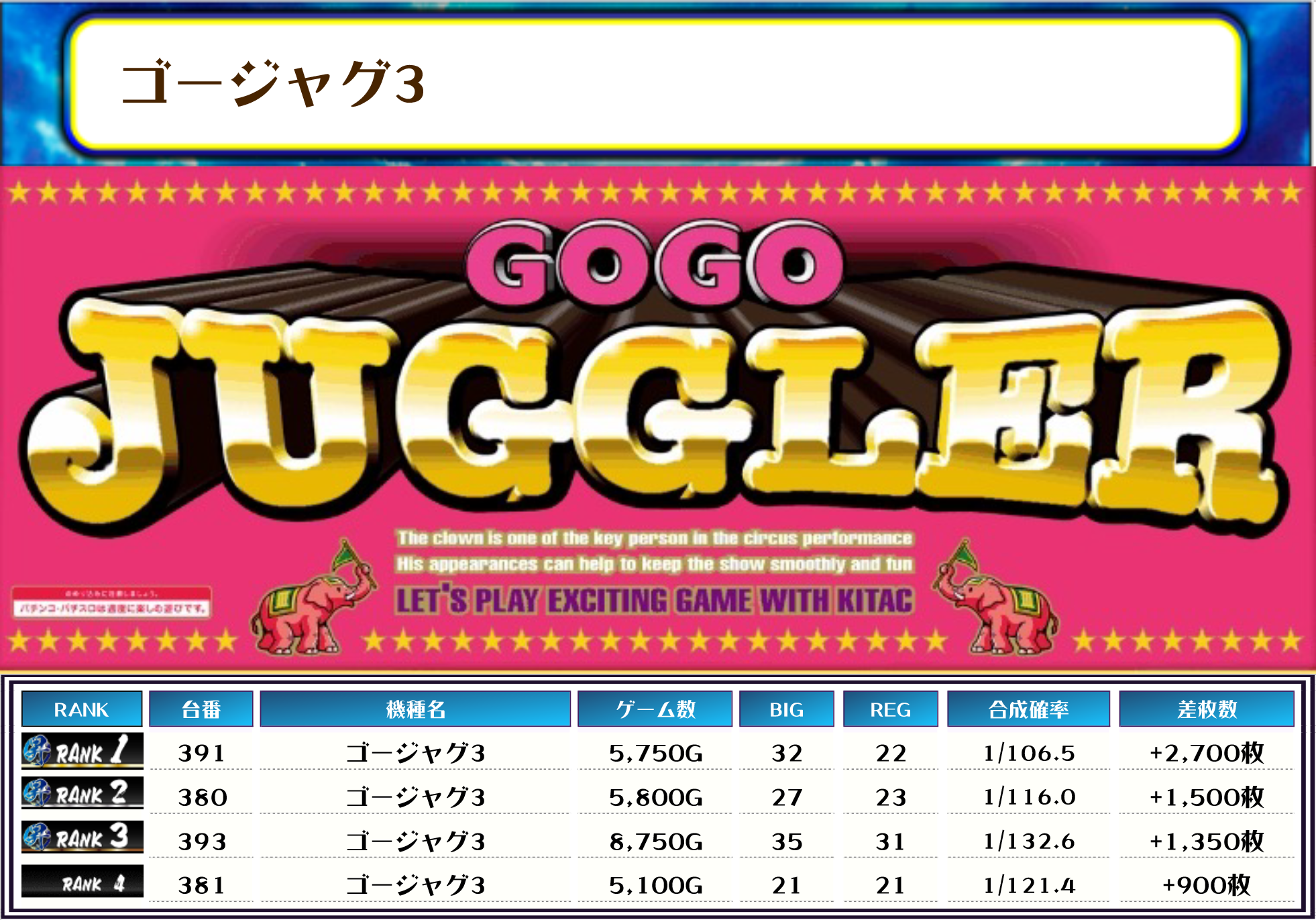 ピックアップした機種は勝率が高かった機種なんですけれど、ジャグラー系が強かったみたいですね✨️