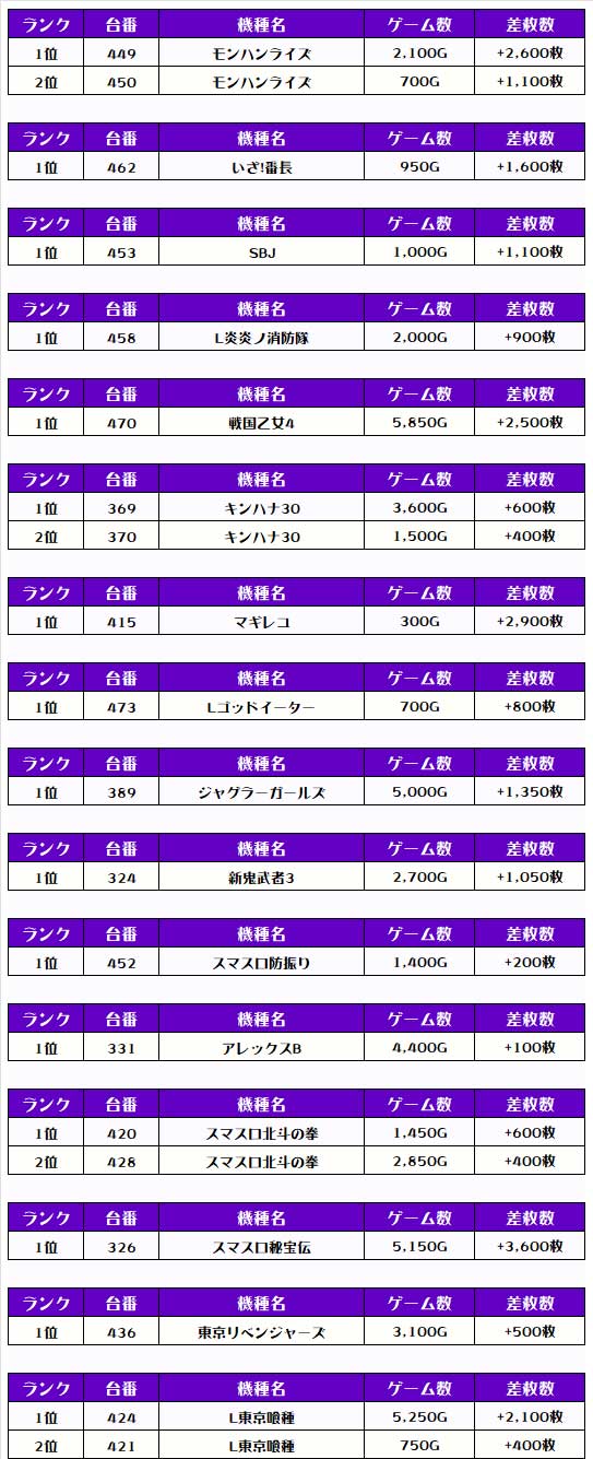 それでは、機種別差枚ランキングをチェックしますか❗️