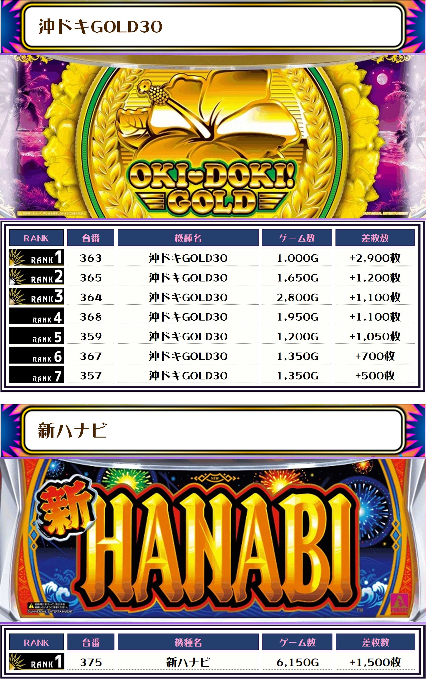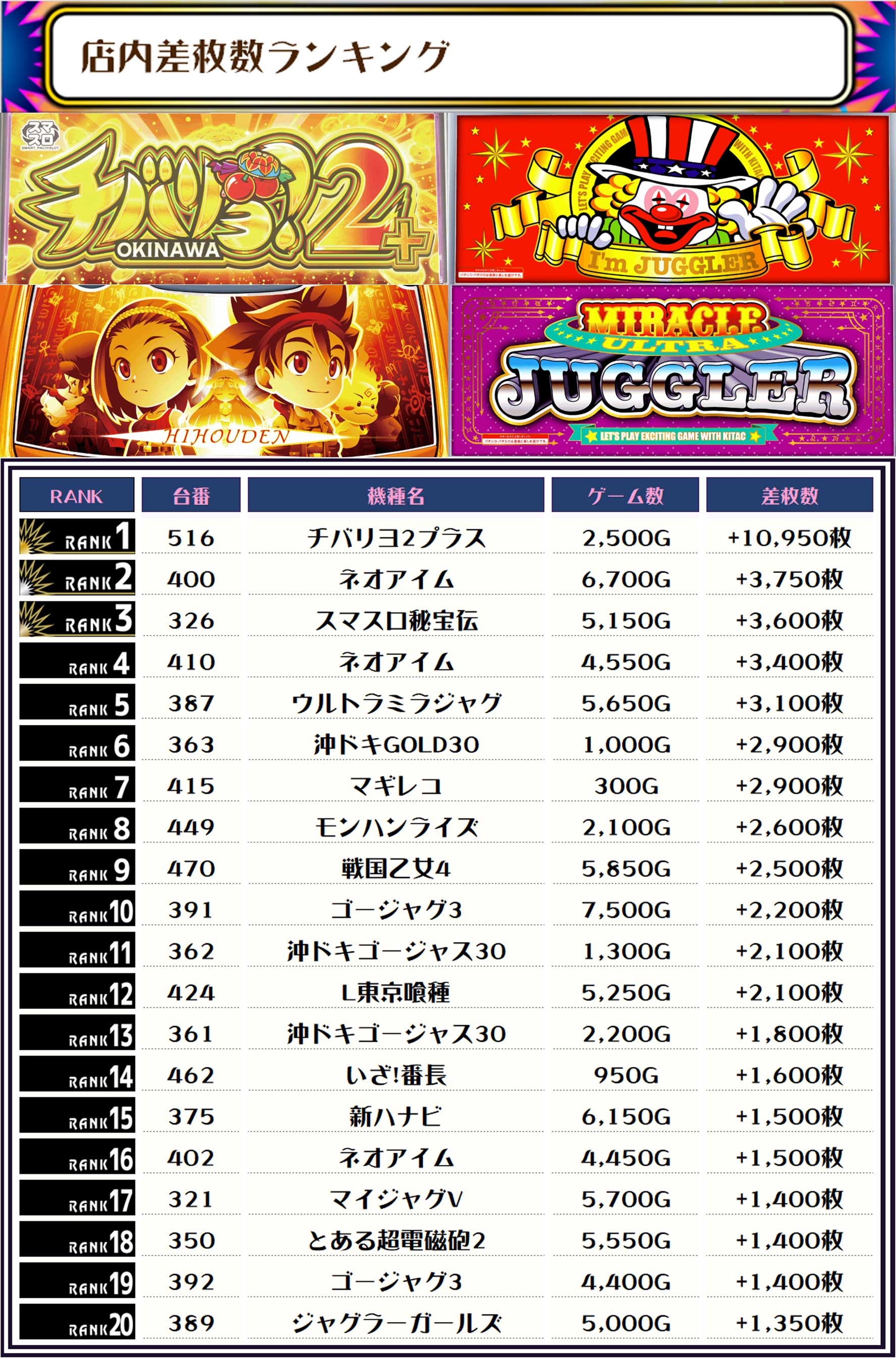 最後に、この日の店内差枚ランキングをご覧ください❗️