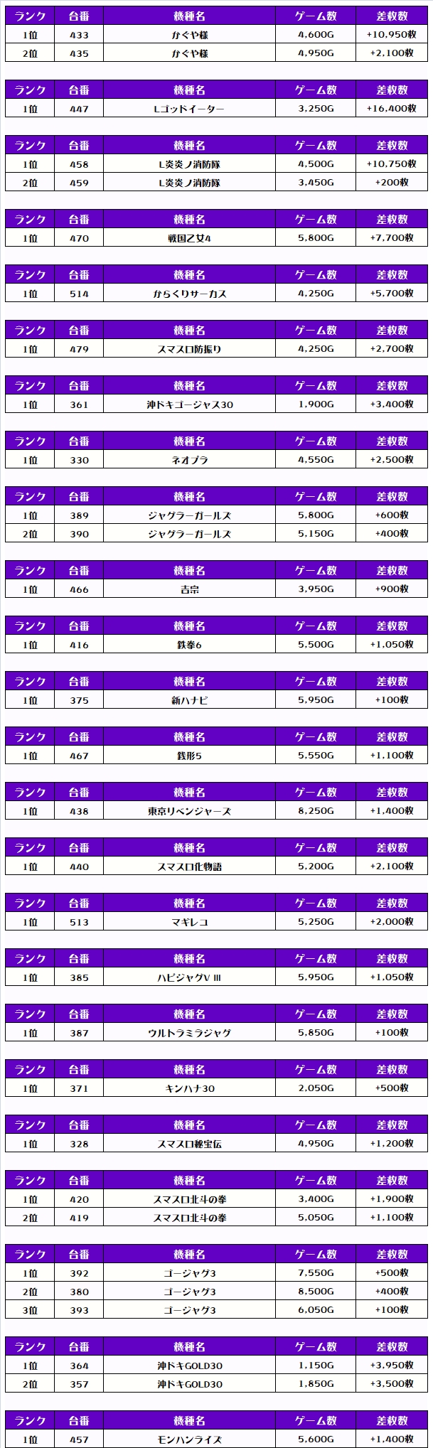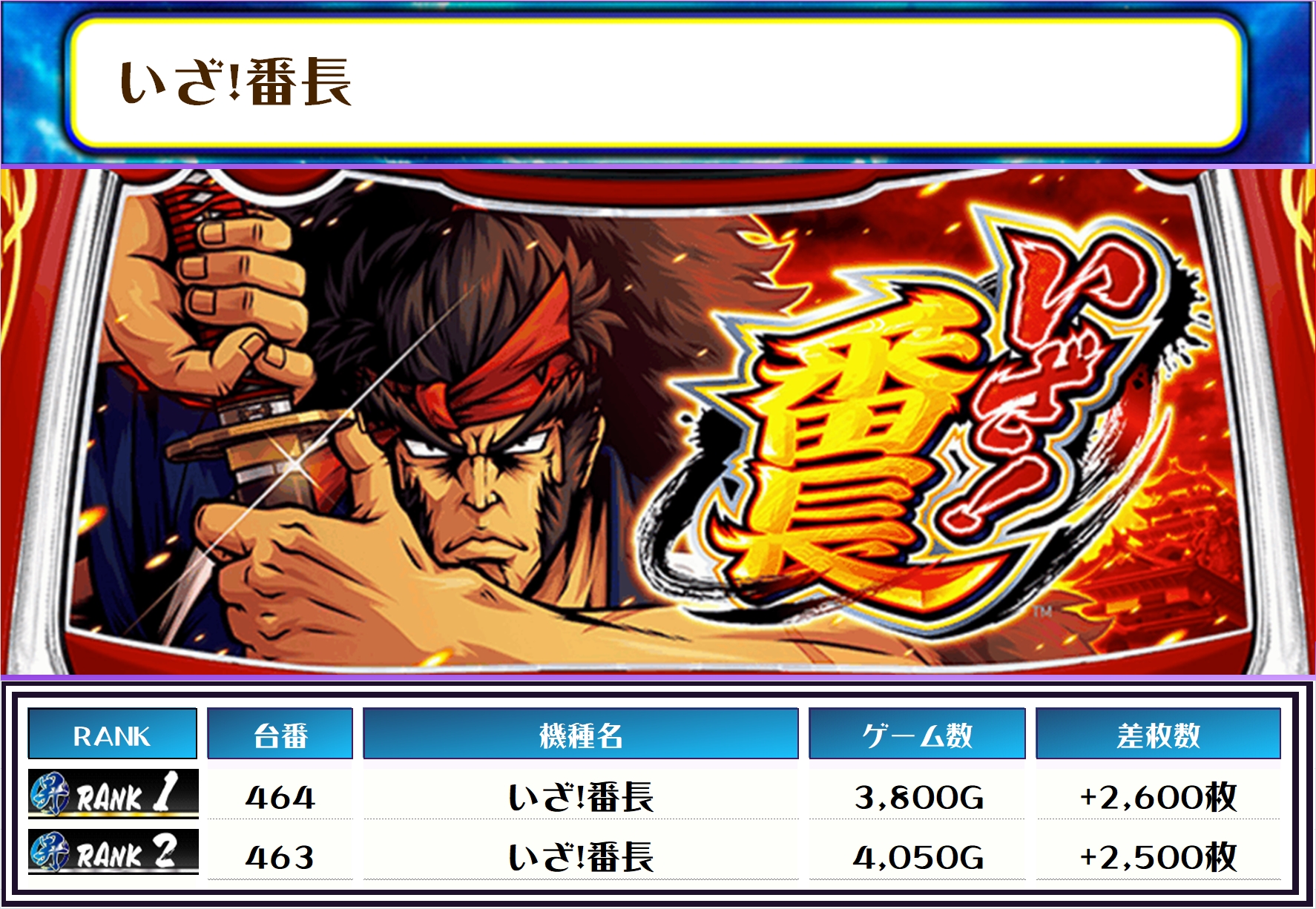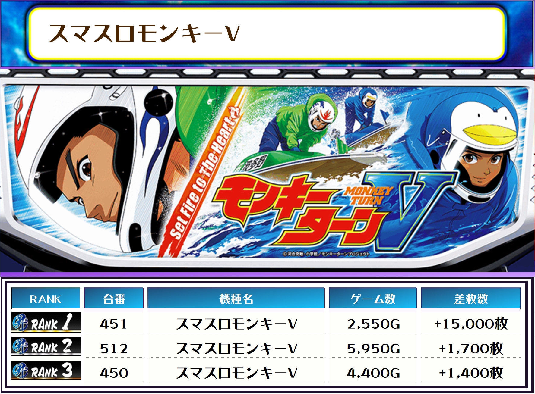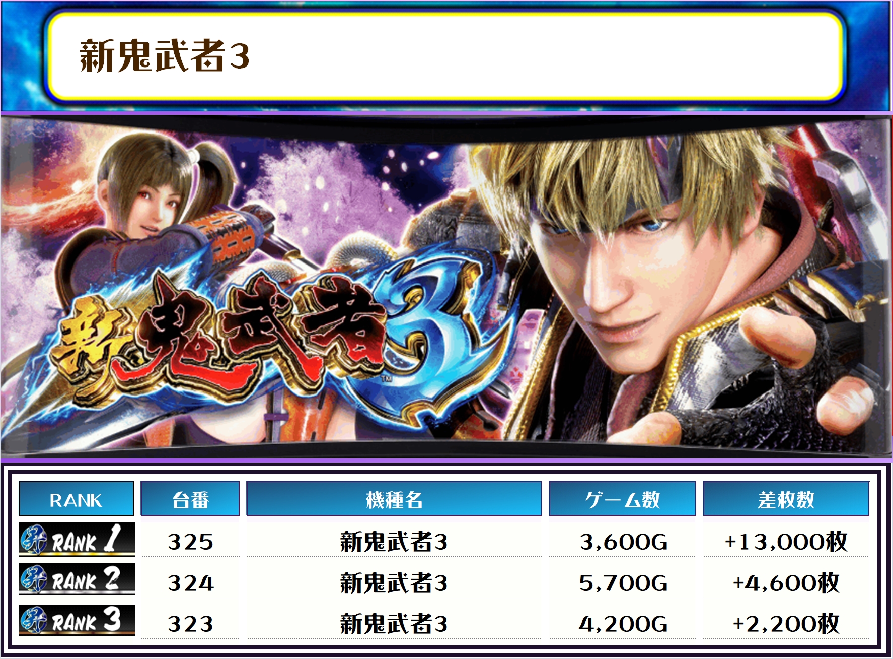 続く2位には【スマスロモンキーV・451番台】の+15,000枚、そして3位には【新鬼武者3・325番台】の+13,000枚がランクインっ🏆🏆🏆🏆