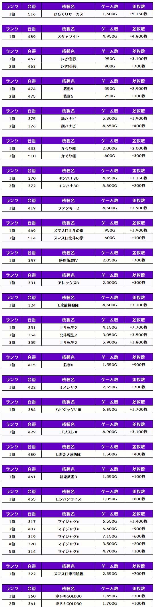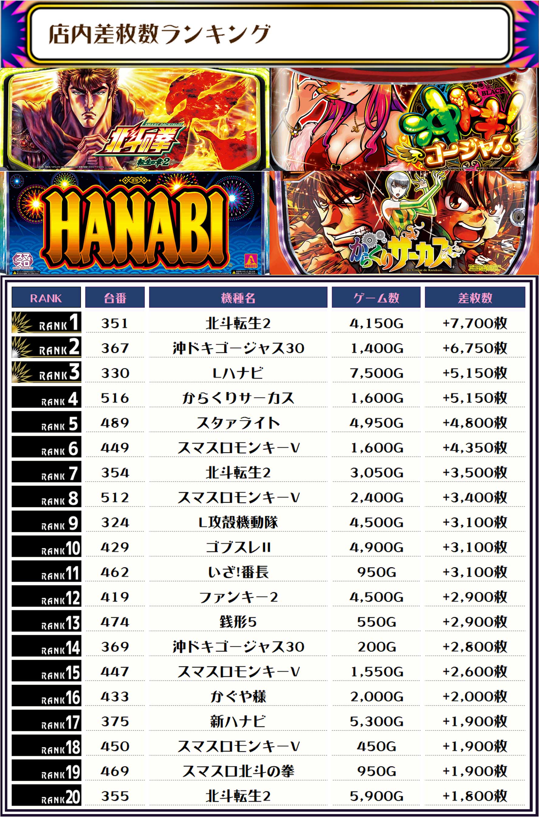 最後に、この日の店内差枚ランキングをご覧ください❗️