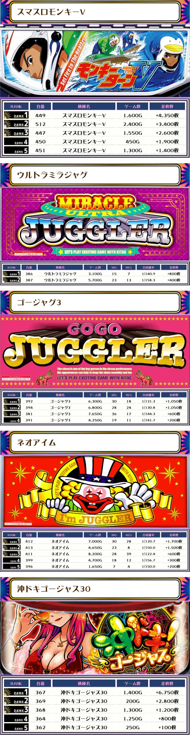ピックアップしたウルトラミラジャグ・ゴージャグ3・ネオアイムは優秀台が多かったみたいだよ📝