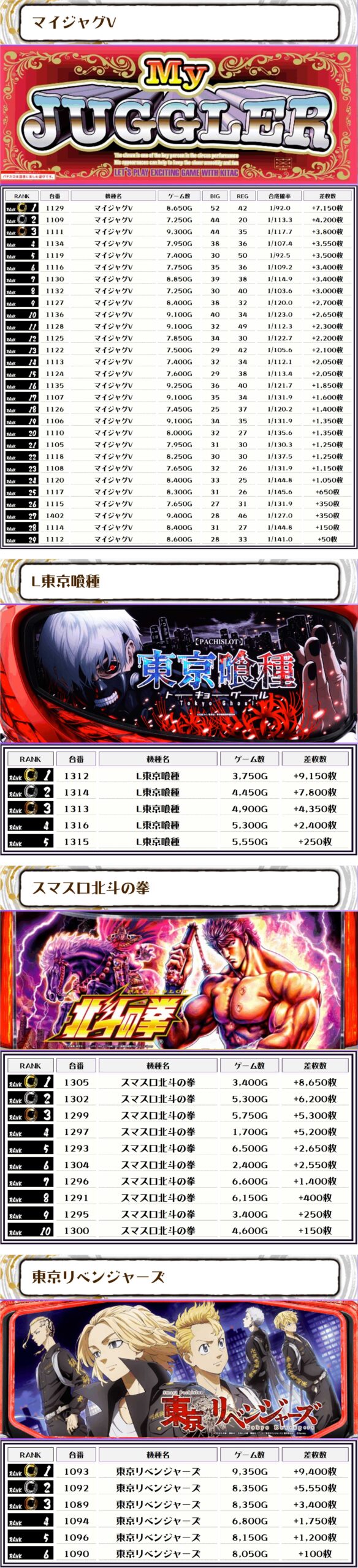 2位には【いざ!番長・1084番台】の+10,900枚、そして3位には【東京リベンジャーズ・1093番台】の+9,400枚がランクインっ🏆🏆🏆