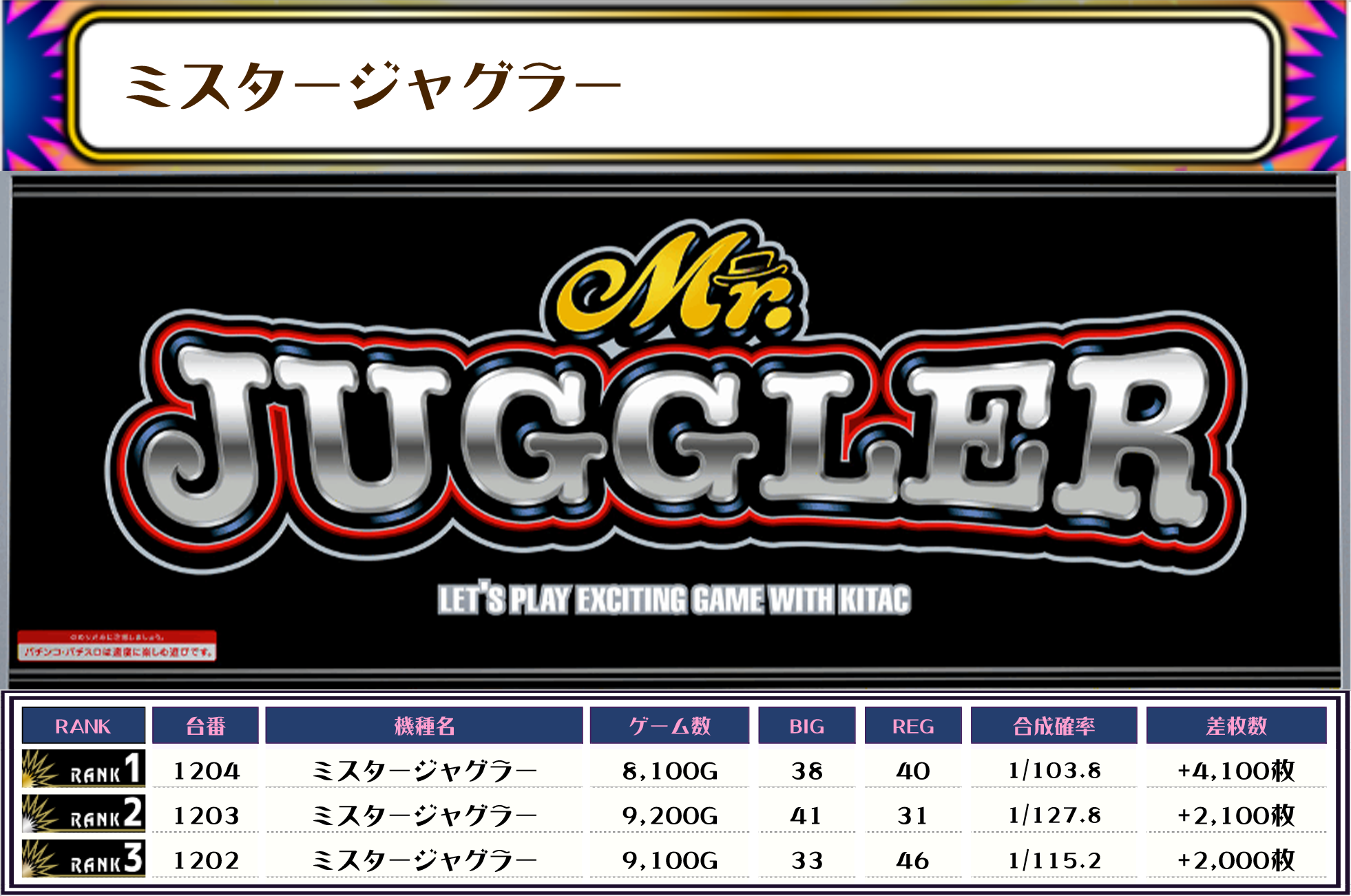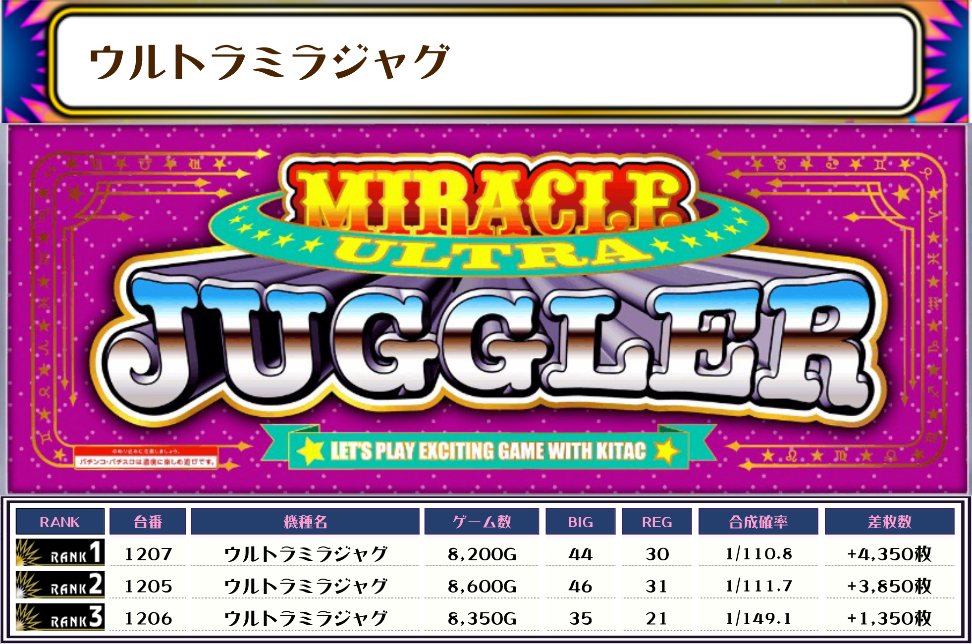 続いて5位と6位にウルトラミラジャグとミスタージャグラーがランクインしたのはボク的にとても嬉しいです🌟