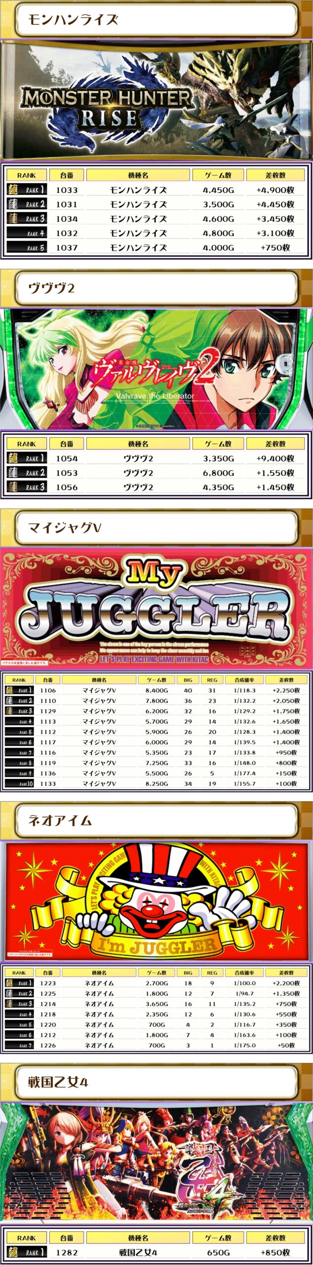 ちなみに、ピックアップしたのは稼働が高く、優秀台が多かったと思われる機種になります👍