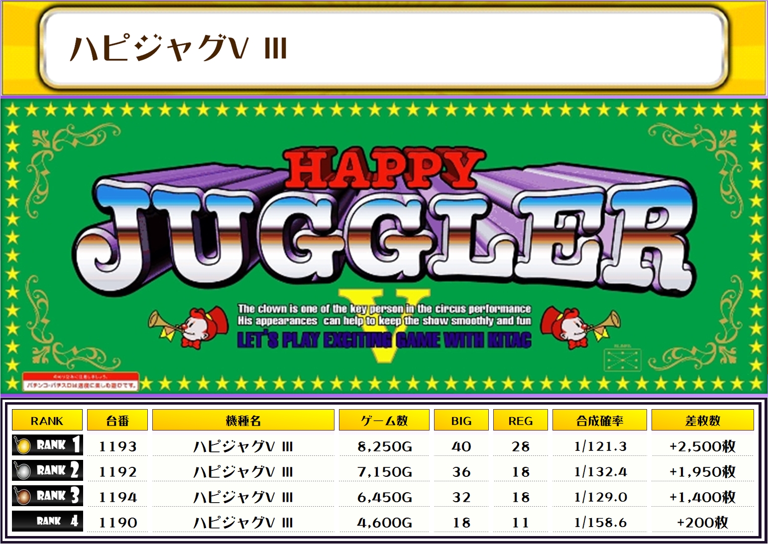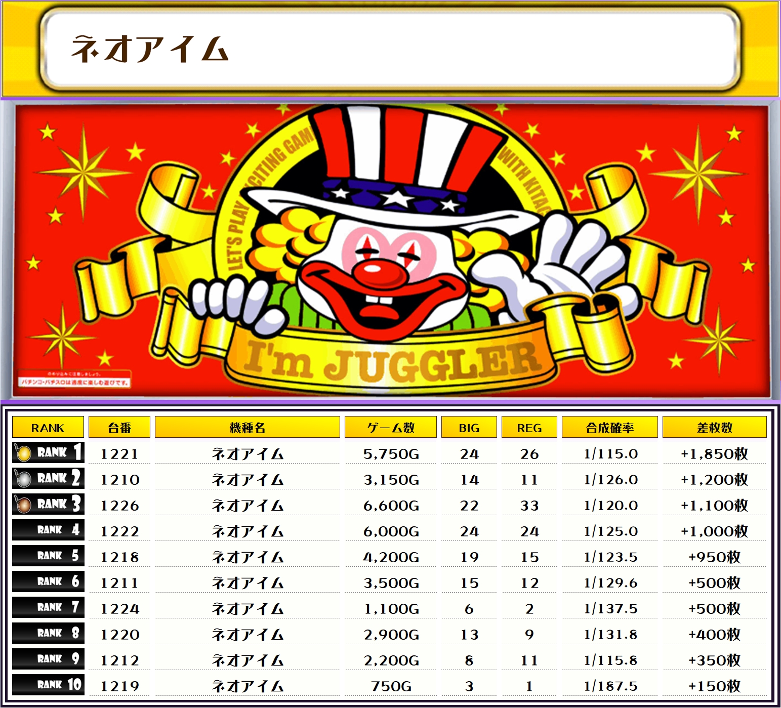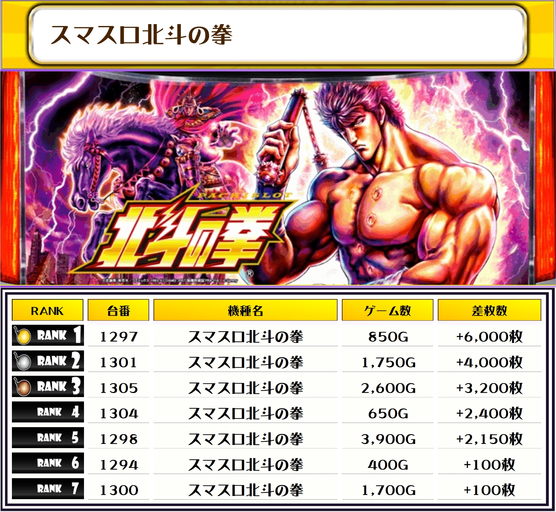 ランキングを見ると万枚突破が2台、さらに5000枚オーバーも複数出現してかなり状況が良かったようですね📝