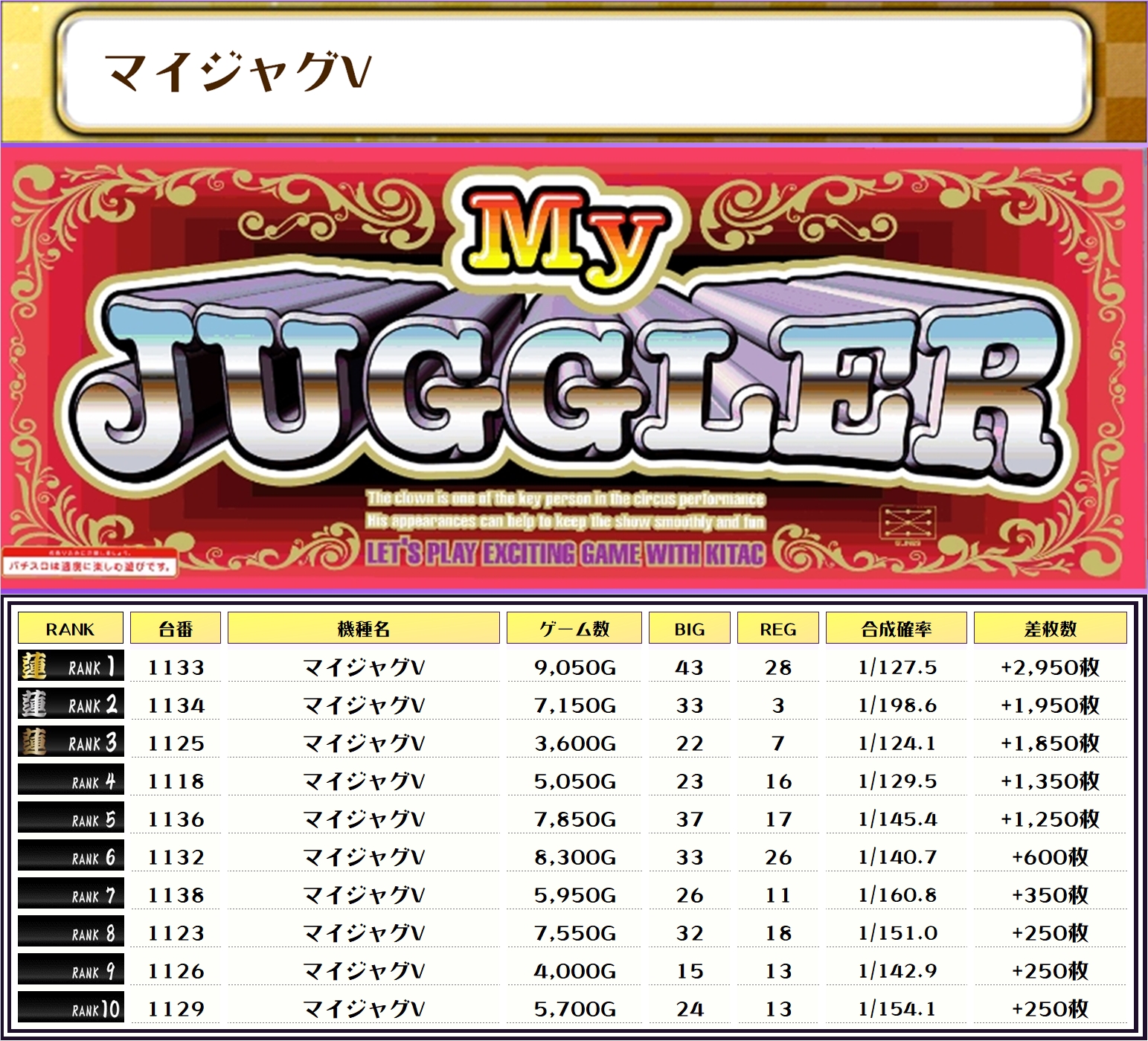 ピックアップしたのは稼働が好調で、優秀台が目立っていたと思われる機種になります👍