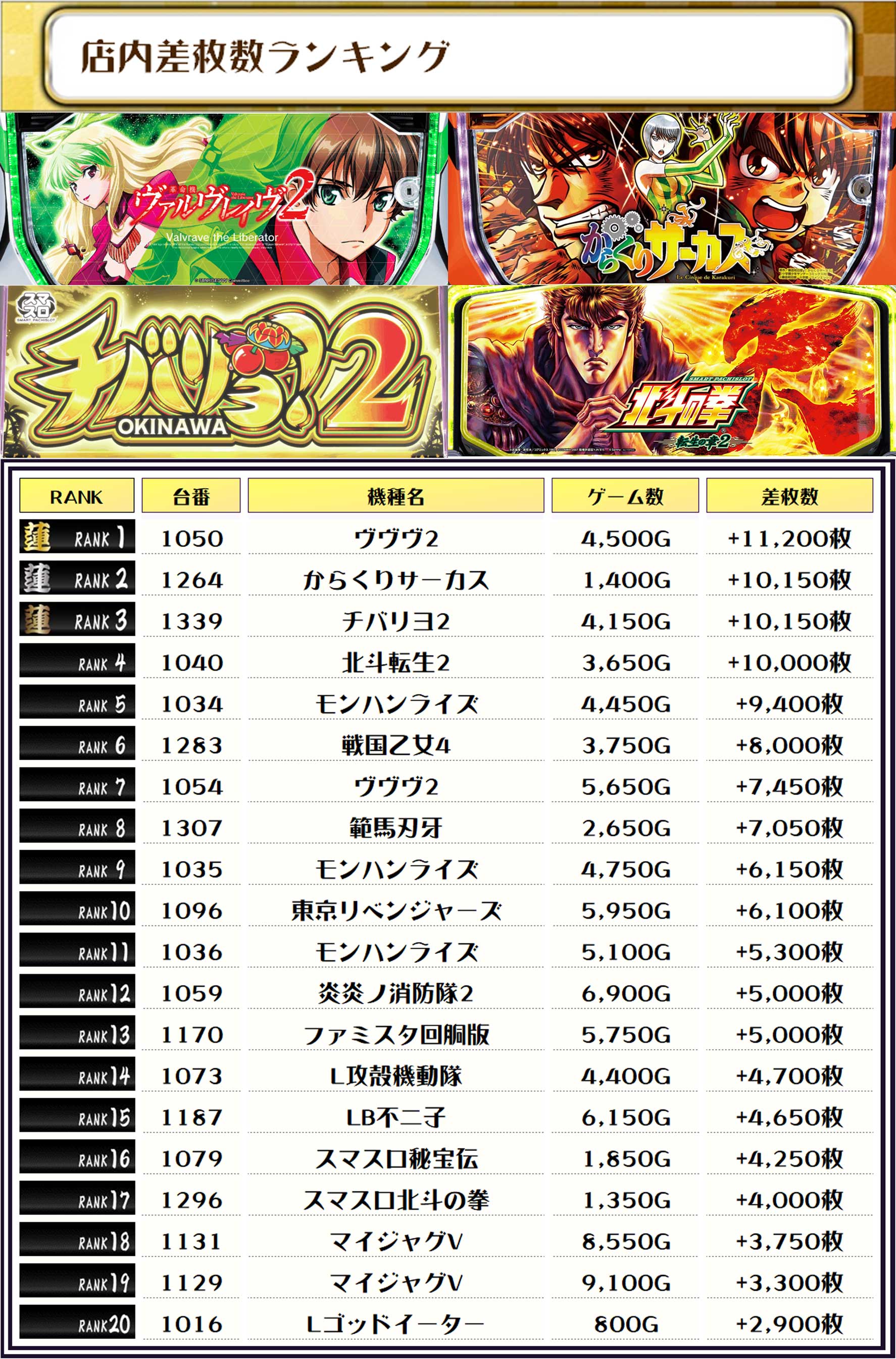 最後に、この日の店内差枚ランキングをご覧ください❗️
