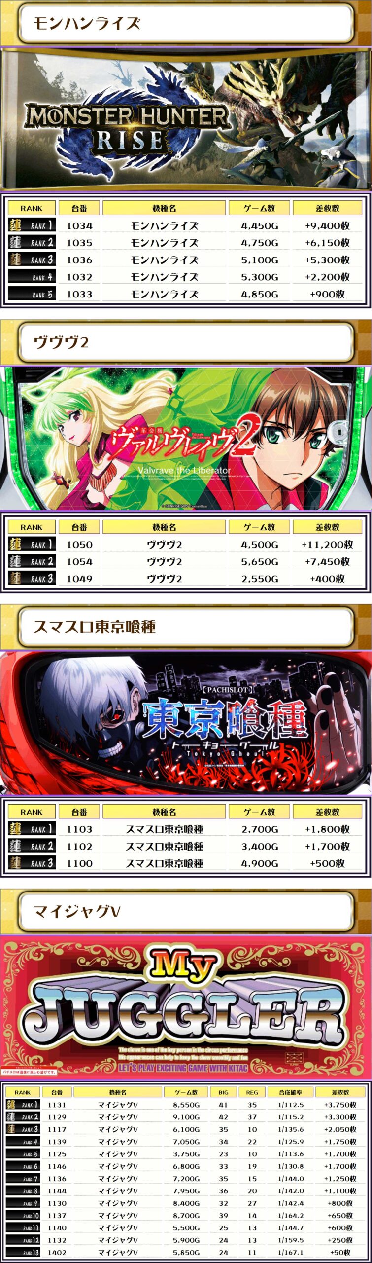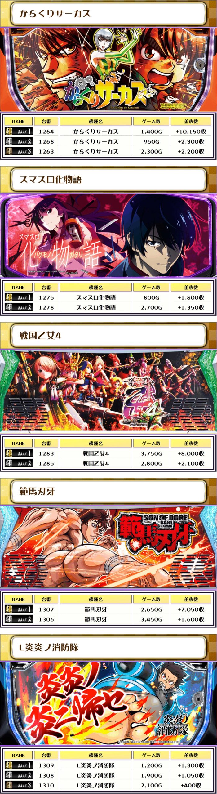 そして、ピックアップしたのは稼働が高く、優秀台が多かったと思われる機種になりますっ👍