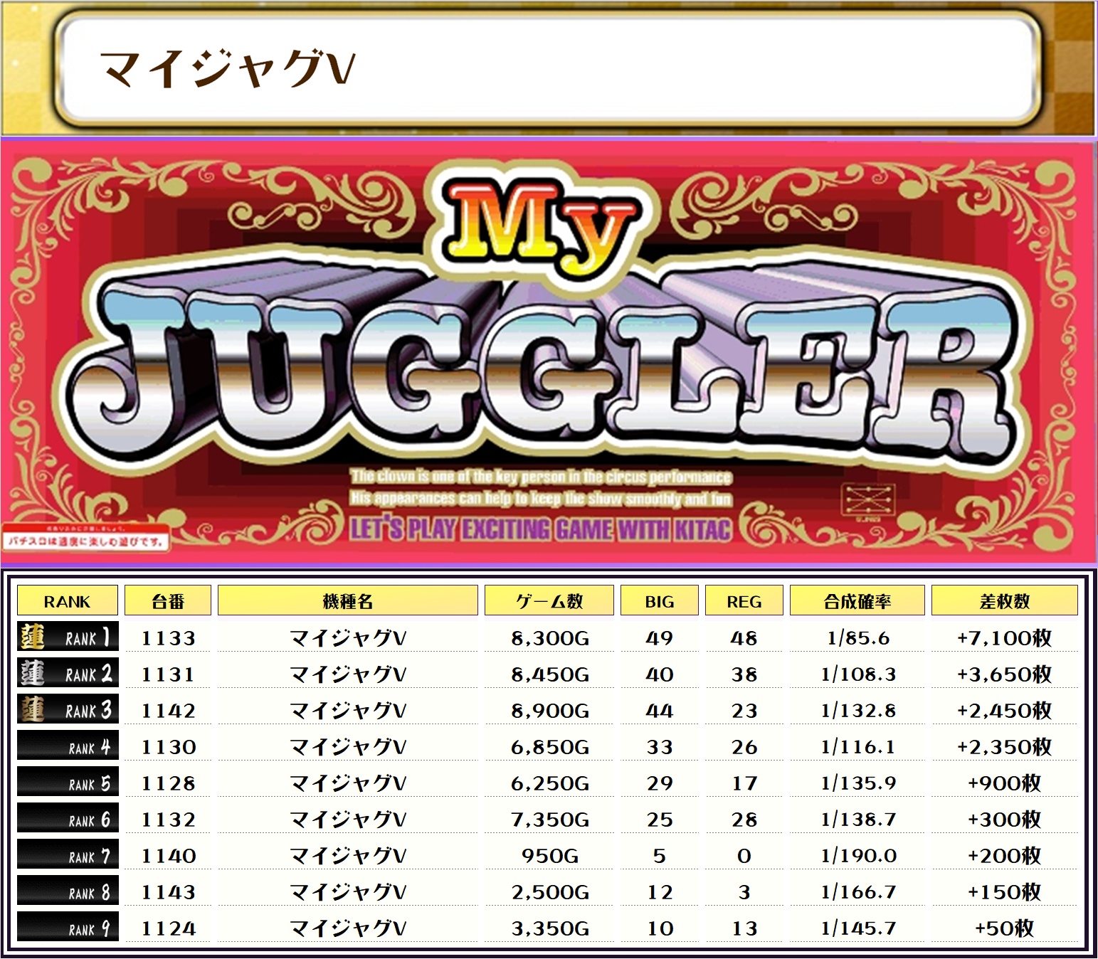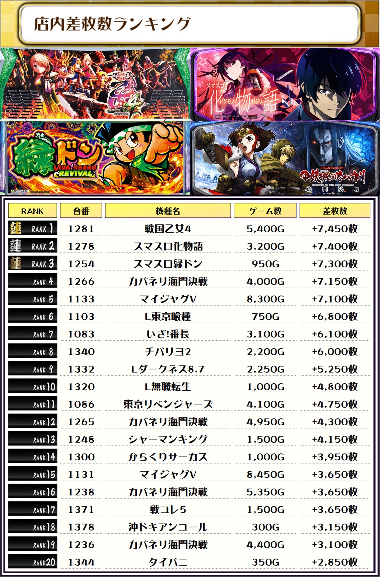 最後に、この日の店内差枚ランキングをご覧ください❗️