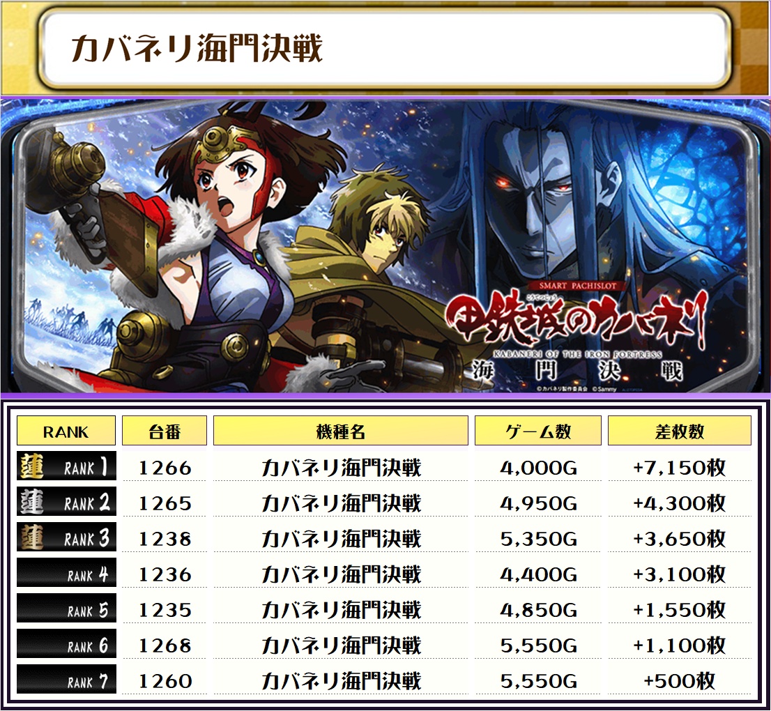 特にカバネリ海門決戦・ヴヴヴ2・化物語は勝率の高さが目立っていましたね👀マイジャグも7000枚オーバーがあったりと目立ってました🔥