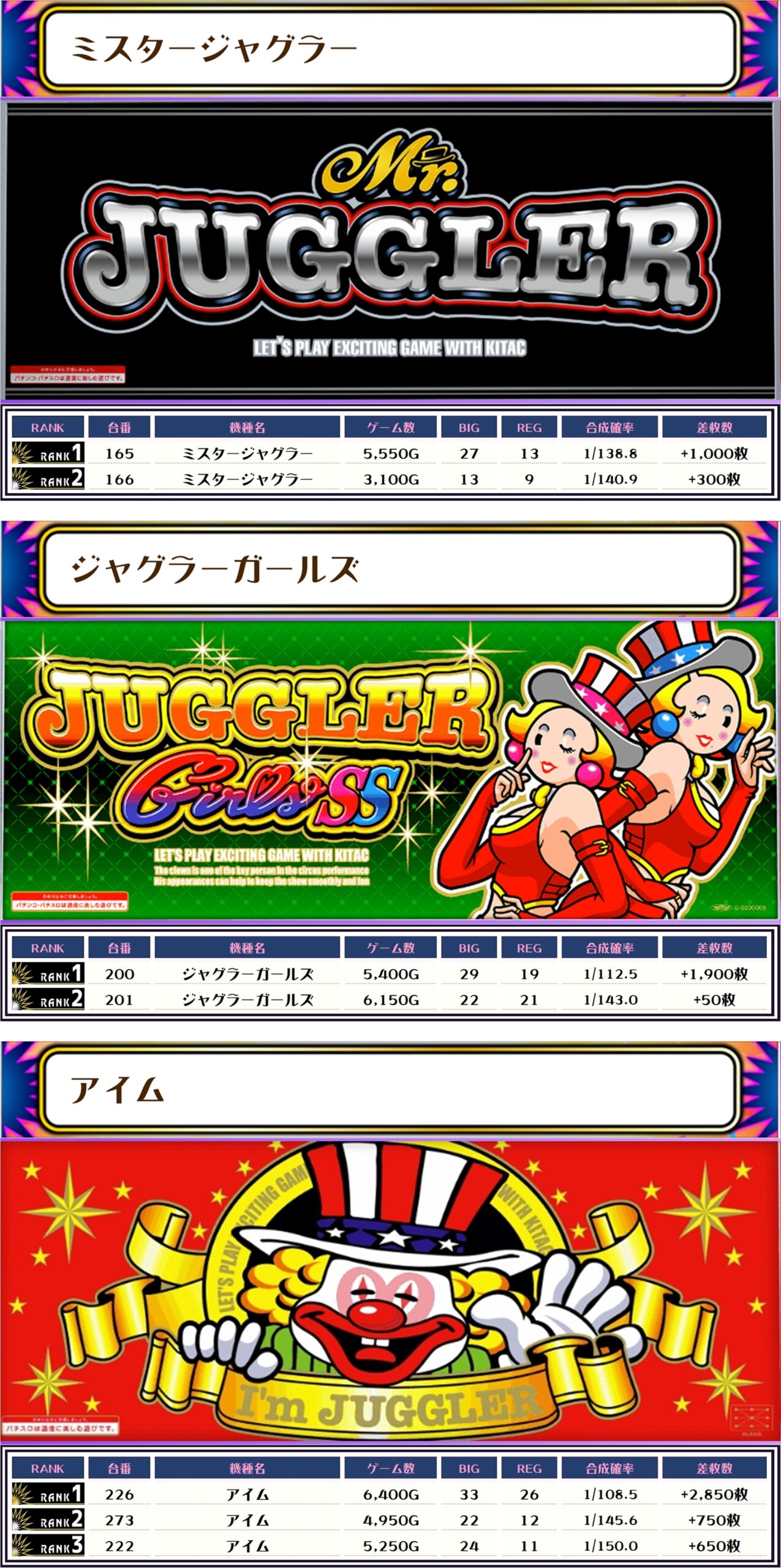 ですが、それ以外のジャグラーシリーズも、全体的にかなりの高配分だったのでは?と睨んでいます👑👑👑