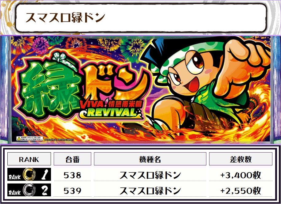 スマスロ緑ドンは2台設置でどちらもプラス差枚でした✨