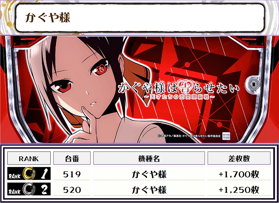 この日の店内差枚ランキングはコチラから🎤