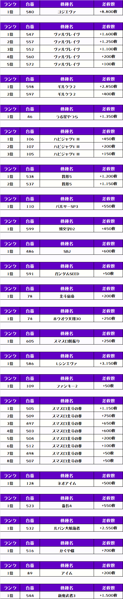 この取材では複数台設置の全機種および全体差枚トップ20をランキング形式でお伝えしていきます❗️