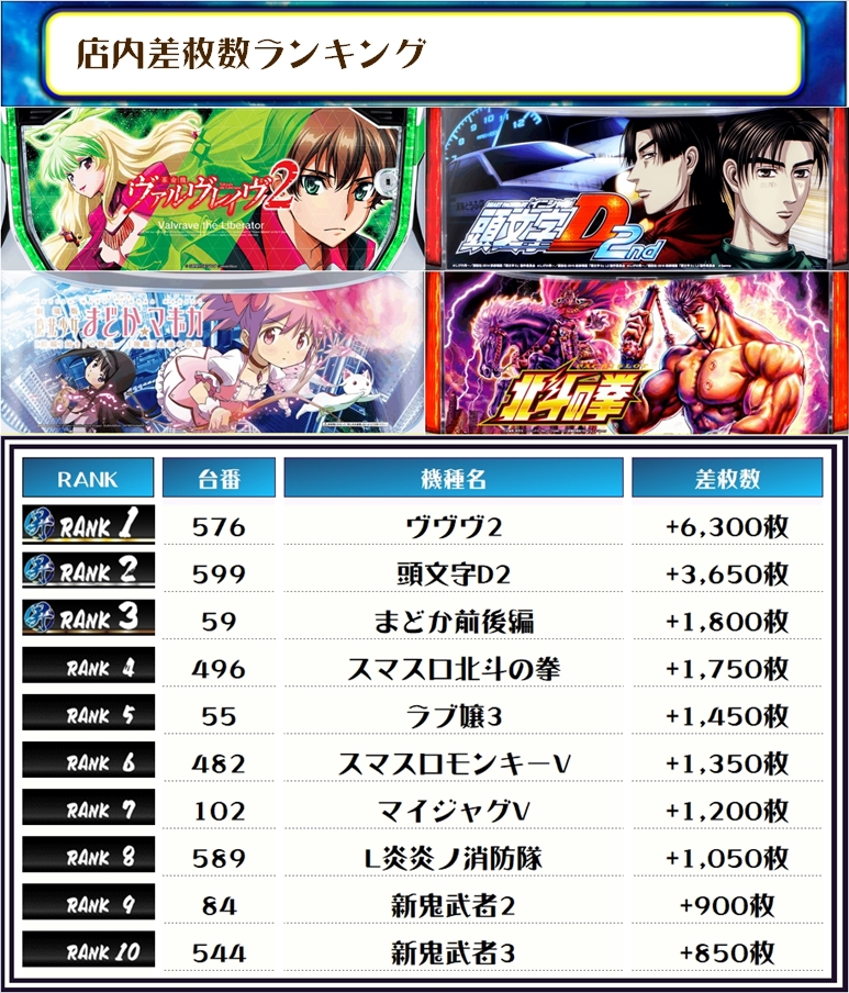 この取材では複数台設置の全機種および全体差枚トップ10をランキング形式でお伝えしていきます❗️