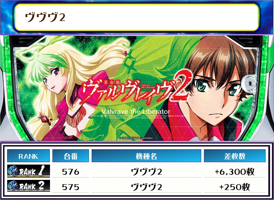 この日の全体差枚トップは【ヴヴヴ2・576番台】で+6,300枚っ🎉