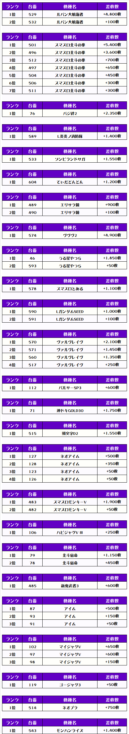 この取材では複数台設置の全機種および全体差枚トップ20をランキング形式でお伝えしていきます❗️