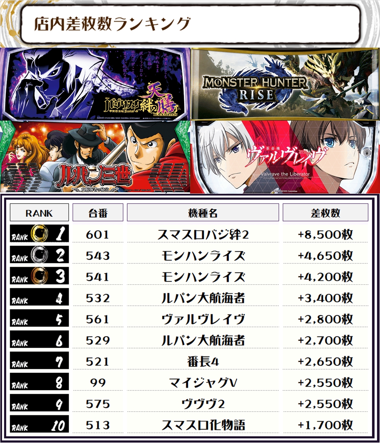 マイジャグVもそうですが、今回はモンハンライズとルパン大航海者が絶好調だった印象があります💥💥💥