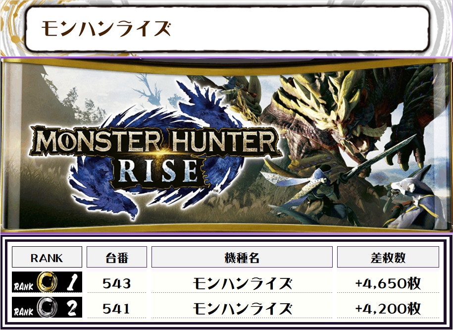 続く2位には【モンハンライズ・543番台】の+4,650枚、そして3位にも同じく【モンハンライズ・541番台】の+4,200枚がランクインしましたっ🏆🏆🏆