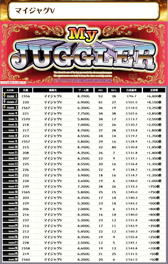 特にマイジャグVは台数が多く、メイン機種なので全体的に稼働がとてもいいですね🤔