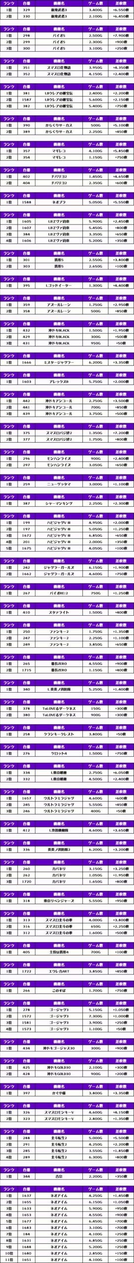 それでは、この日の【機種別差枚ランキング】を見ていきましょう❗️