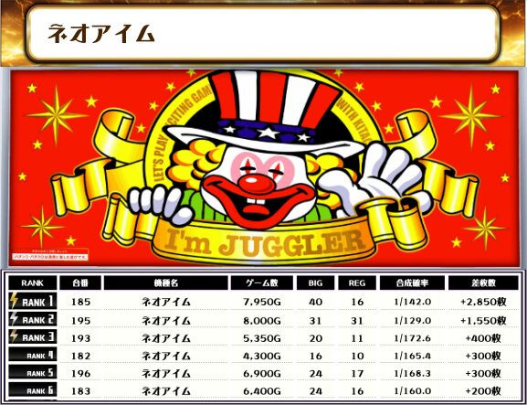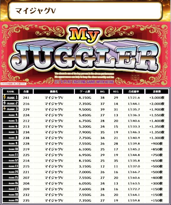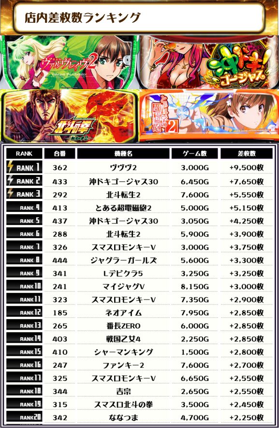 続いては【店内全台の差枚ランキング】をご覧ください!