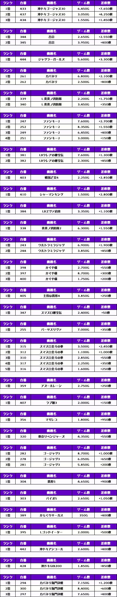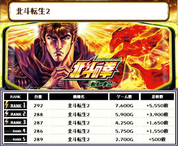 2位には【沖ドキゴージャス・433番台】の+7,650枚、そして3位には【北斗転生2・292番台】の+5,550枚がランクインっ💥💥💥💥💥