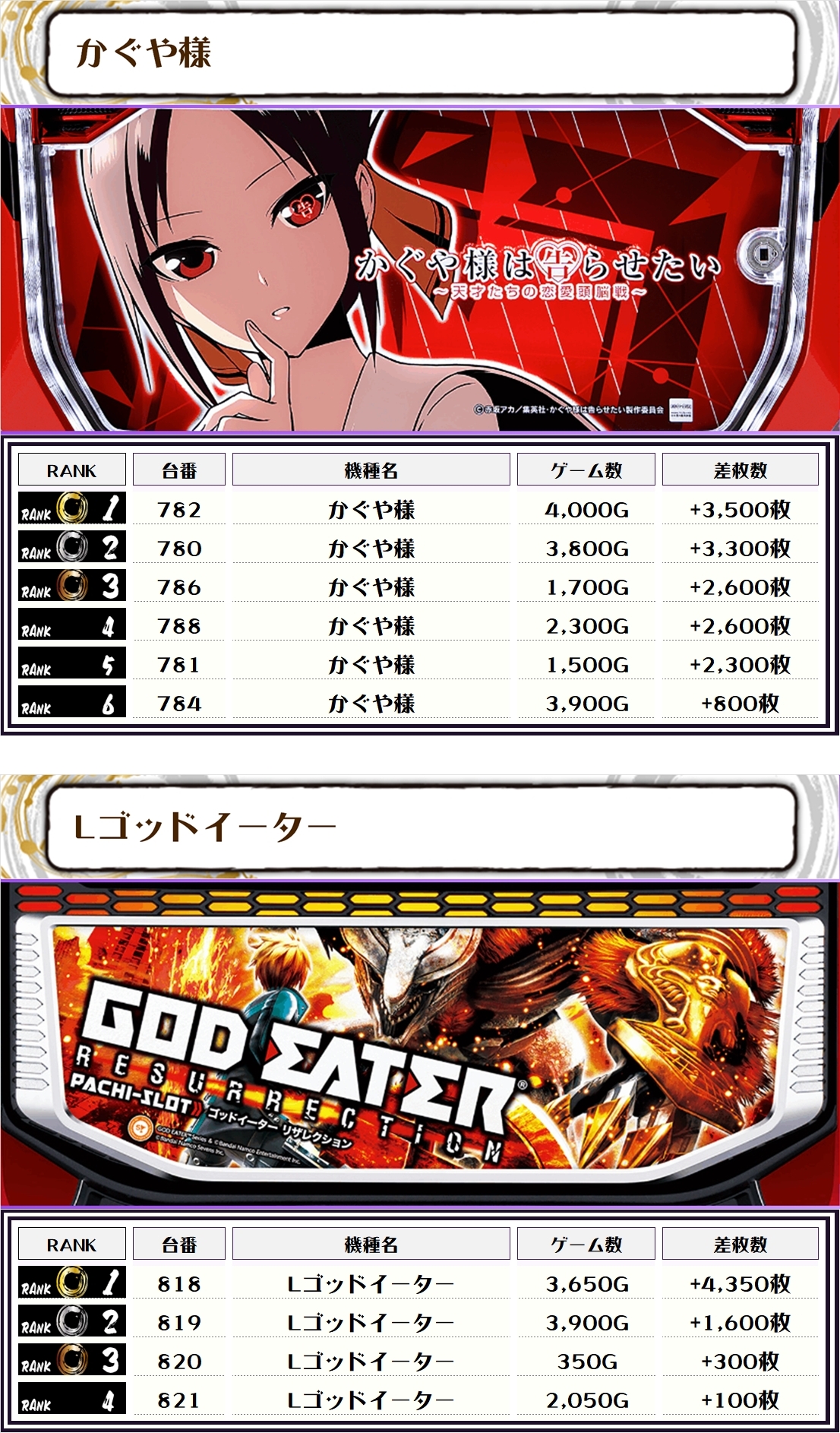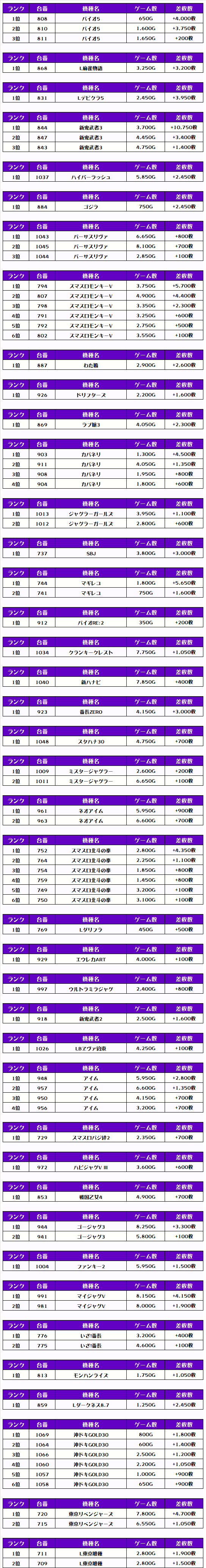 また、この日の注目台差枚ランキングがこちら❗️