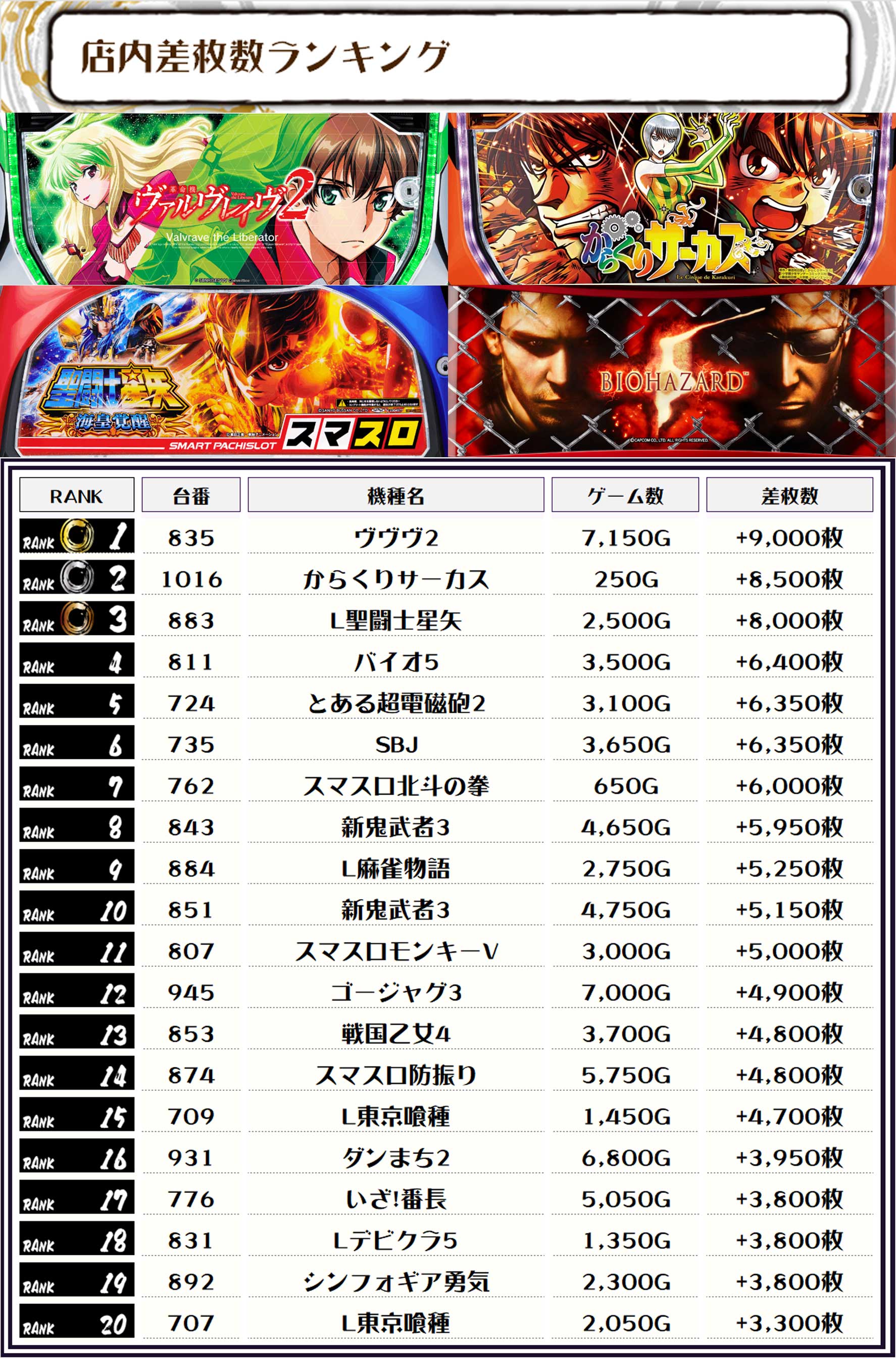 それでは【機種別差枚ランキング】をチェックしていきましょう🙆♀️