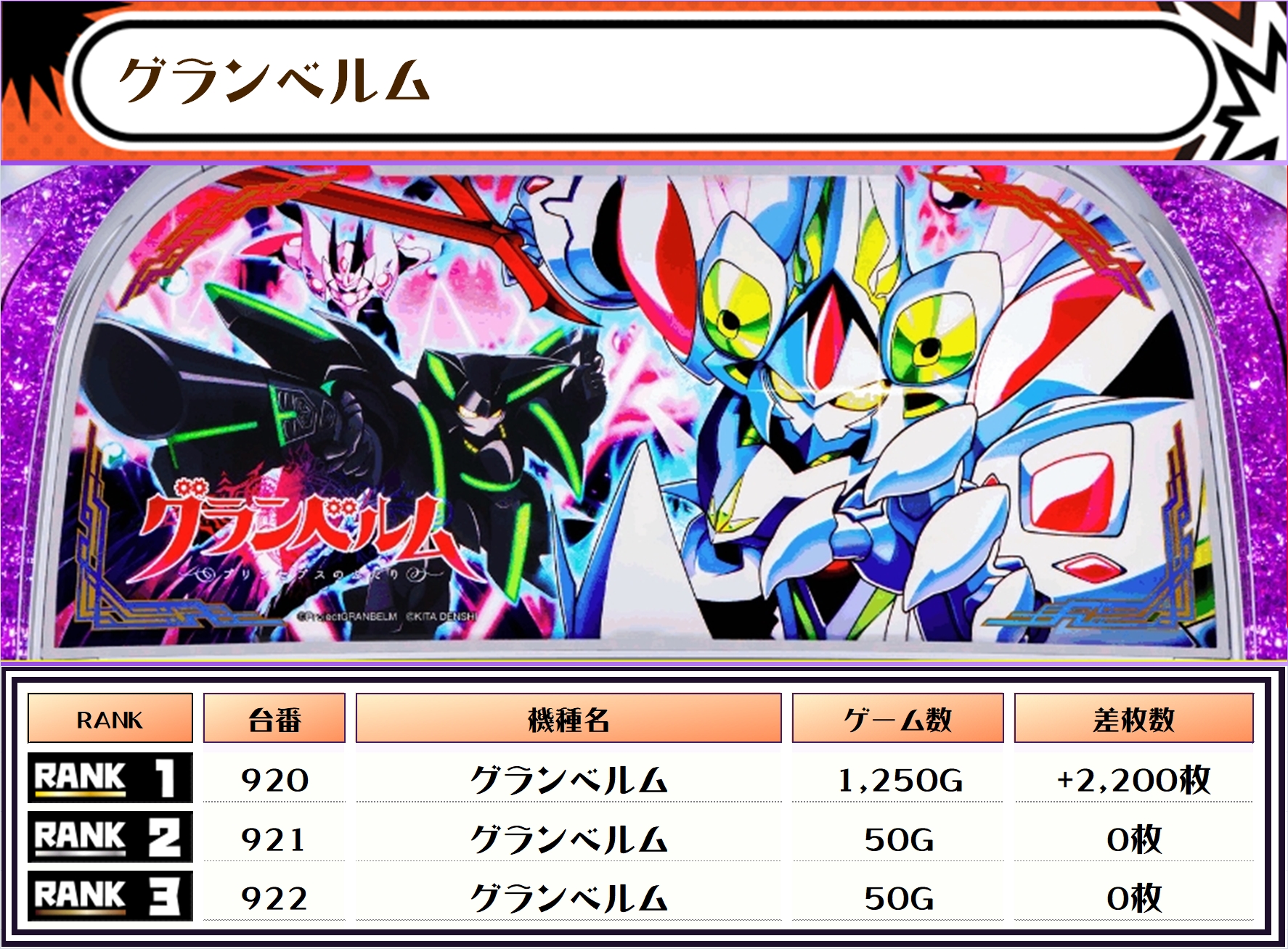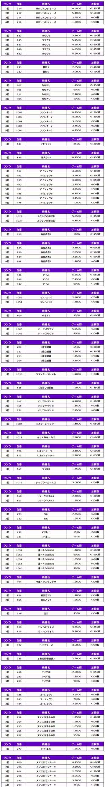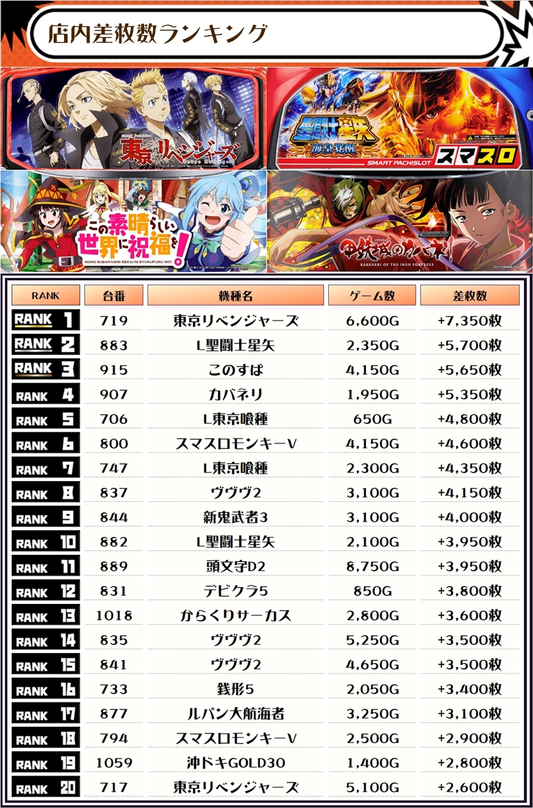 また、この日の注目台差枚ランキングがこちら❗️