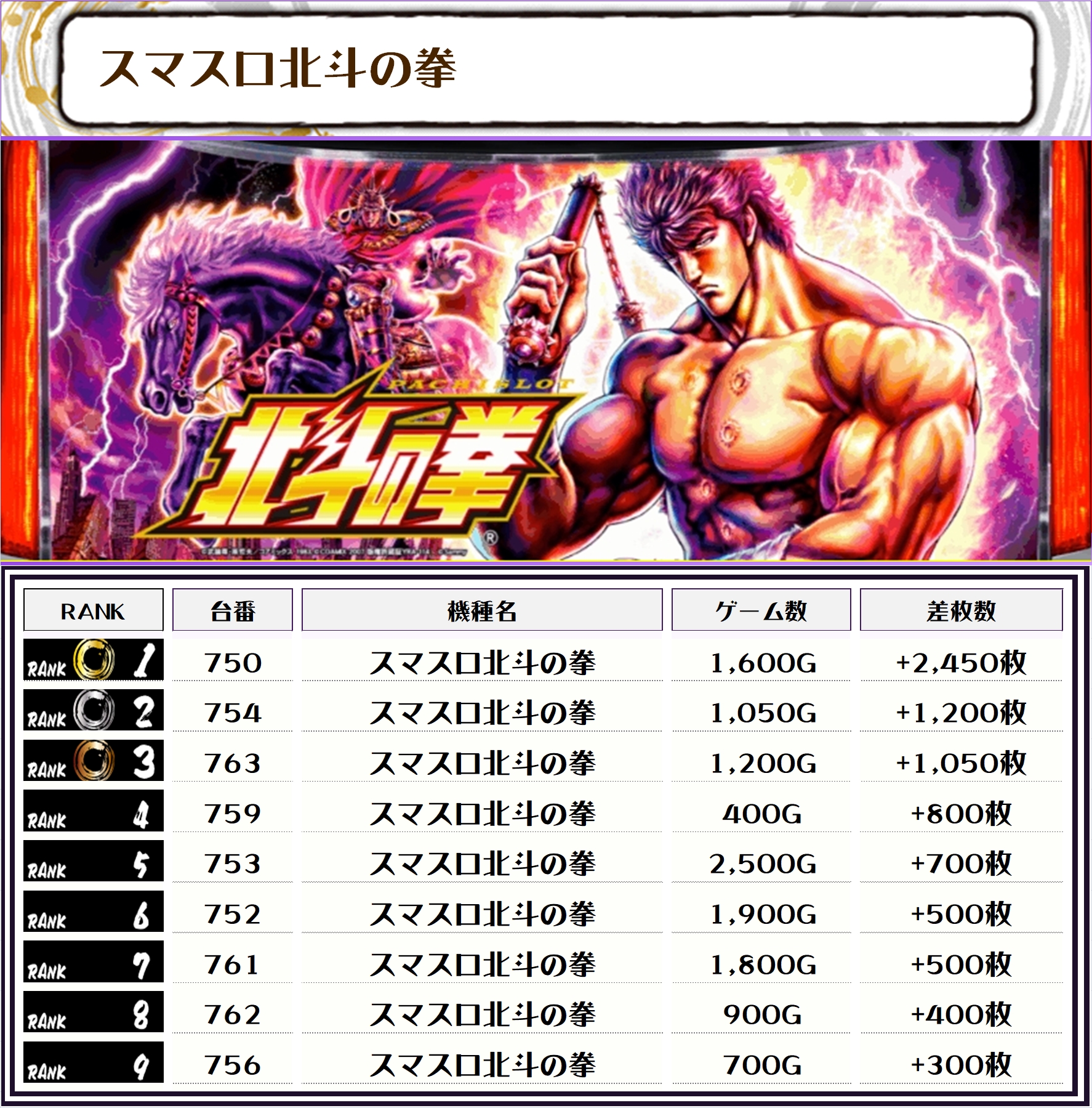 スマスロの人気機種やメダル機まで店内から多くの優秀台が確認でき、今回も天下無双の名にふさわしい素晴らしい結果だったと思います👑