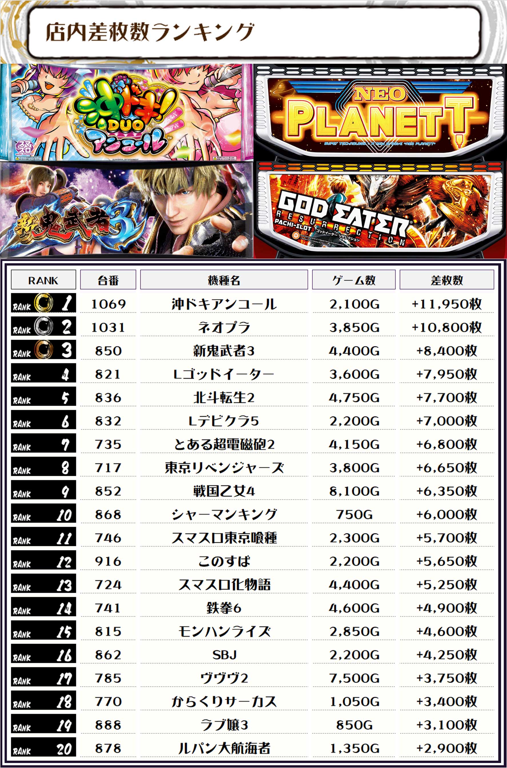 2位には【ネオプラ・1031番台】の+10,800枚、そして3位には【新鬼武者3・850番台】の+8,400枚がランクインっ🏆🏆🏆