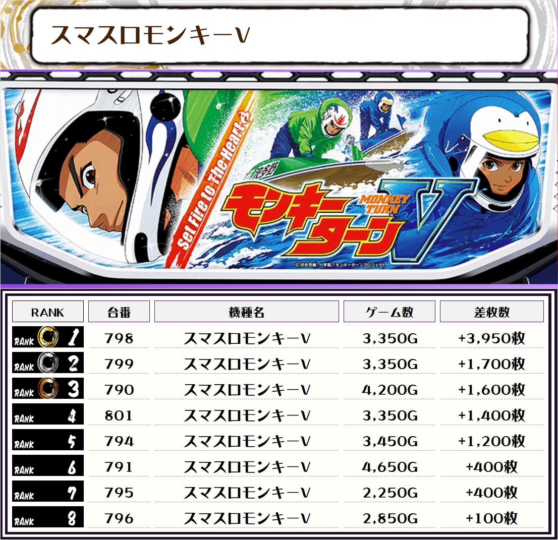 今回のランキングも、ほぼ5000枚オーバーに加え、万枚オーバーが3台も出現😲💥😲💥😲