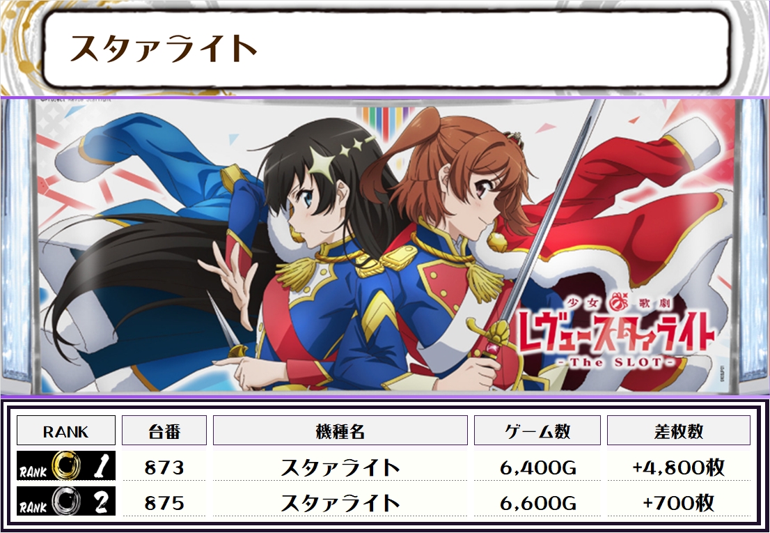 また、この日の注目台差枚ランキングがこちら❗️