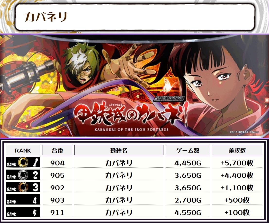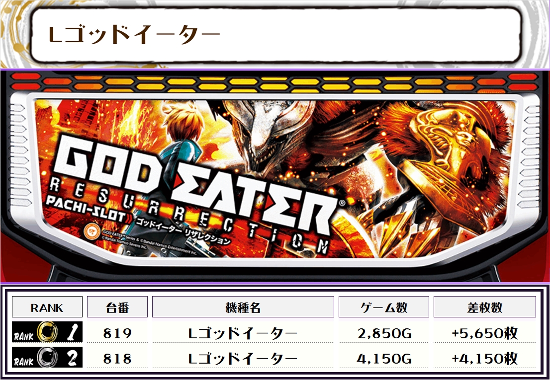 今回のランキングは、ほぼ4000枚オーバーに加え、万枚オーバーは2台出現😲💥😲💥😲