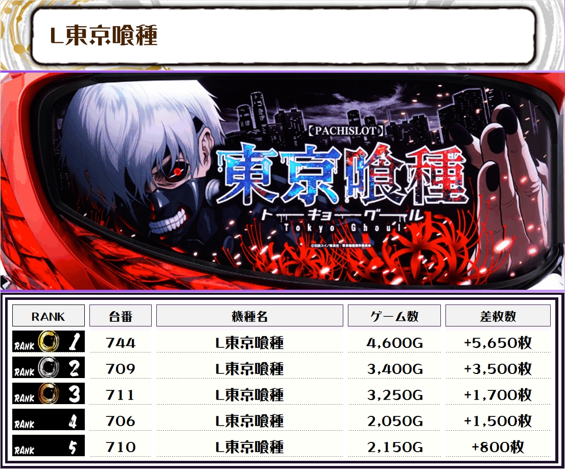 また、この日の注目台差枚ランキングがこちら❗️