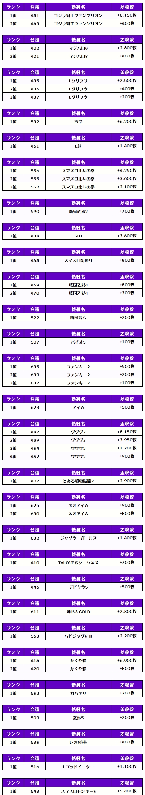 今回のランキングも5000枚以上の台が7台も出現しましたね🌈