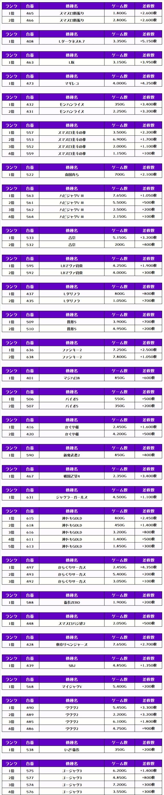 ということで、この日の店舗全体差枚数ランキングがこちら!!