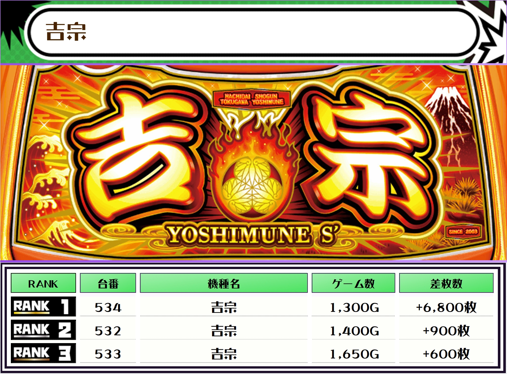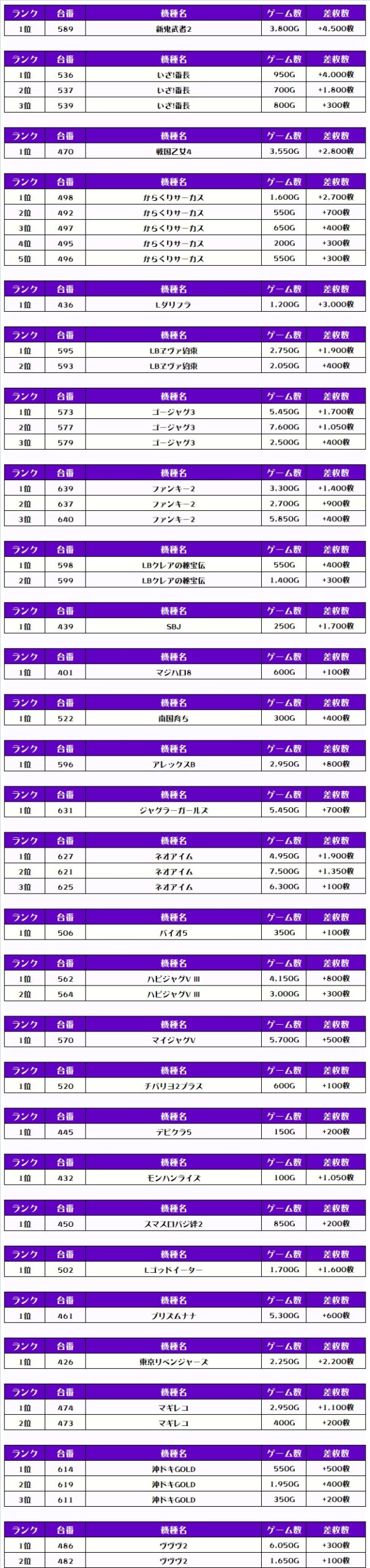 ということで、この日の店舗全体差枚数ランキングがこちら!!