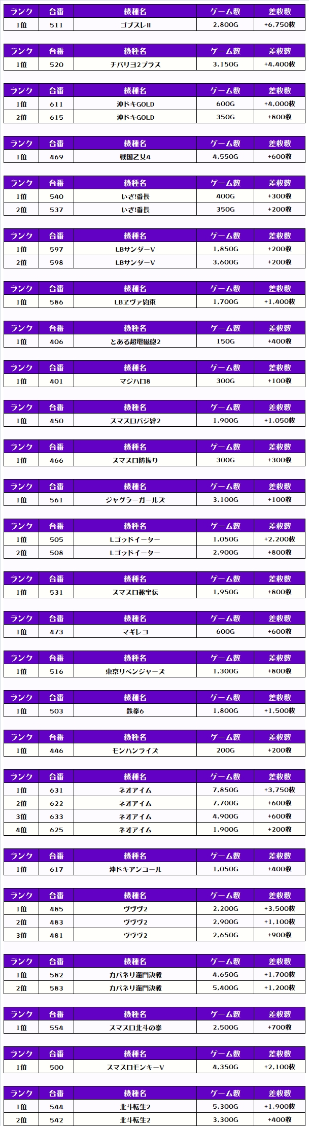 それでは、この日の【機種別差枚ランキング】を見ていきましょう❗️