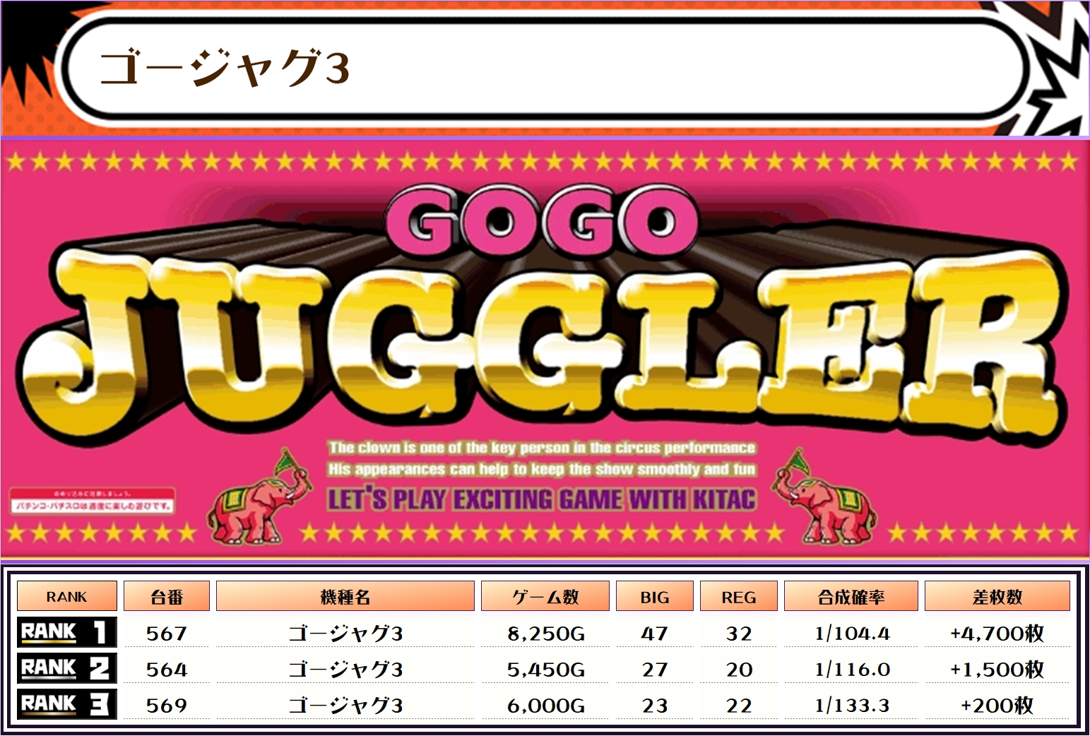 ピックアップした機種は、客付きが良好であったり、勝率が高めだった機種になります✨