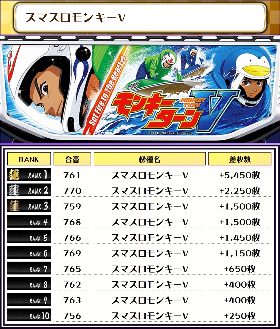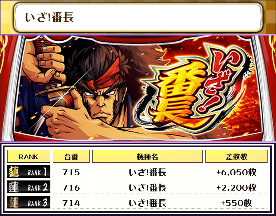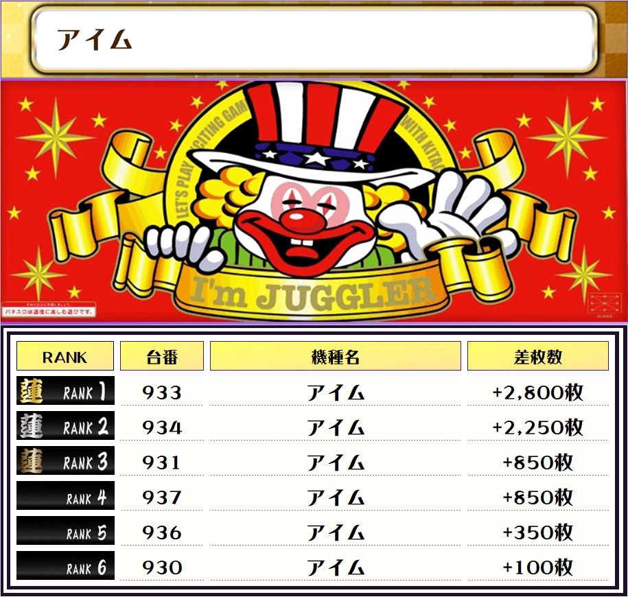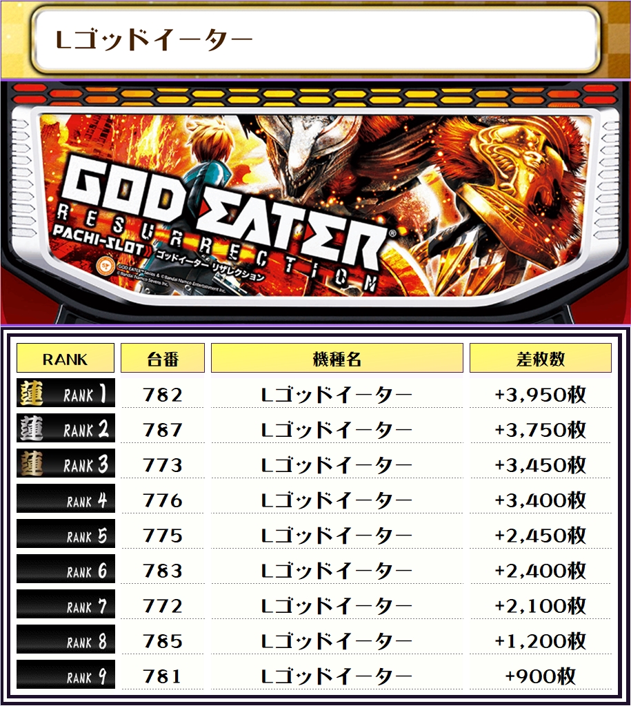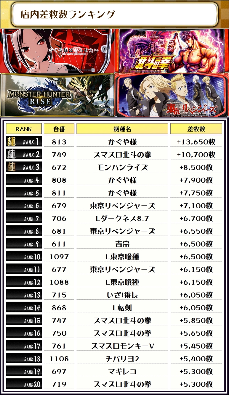 続いては【店内全台の差枚ランキング】をご覧ください!