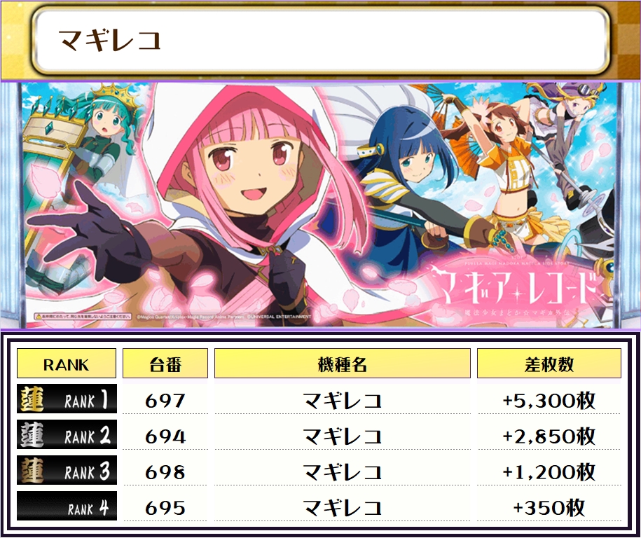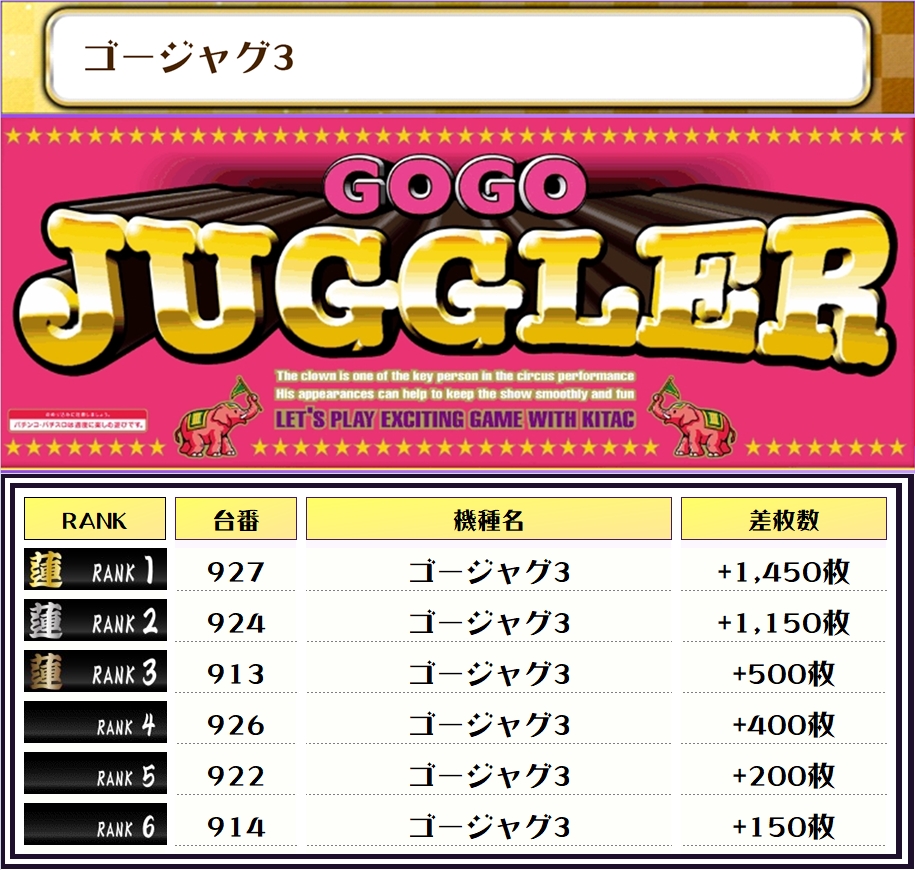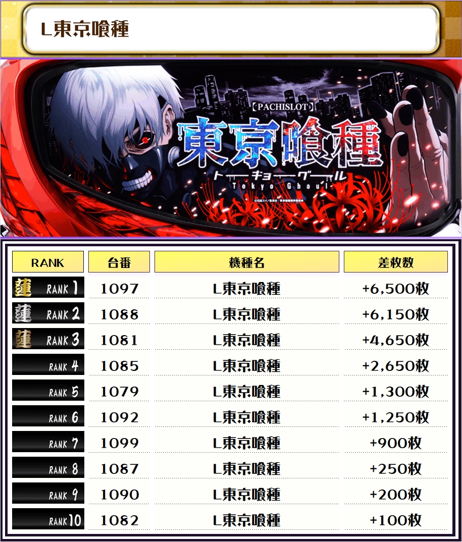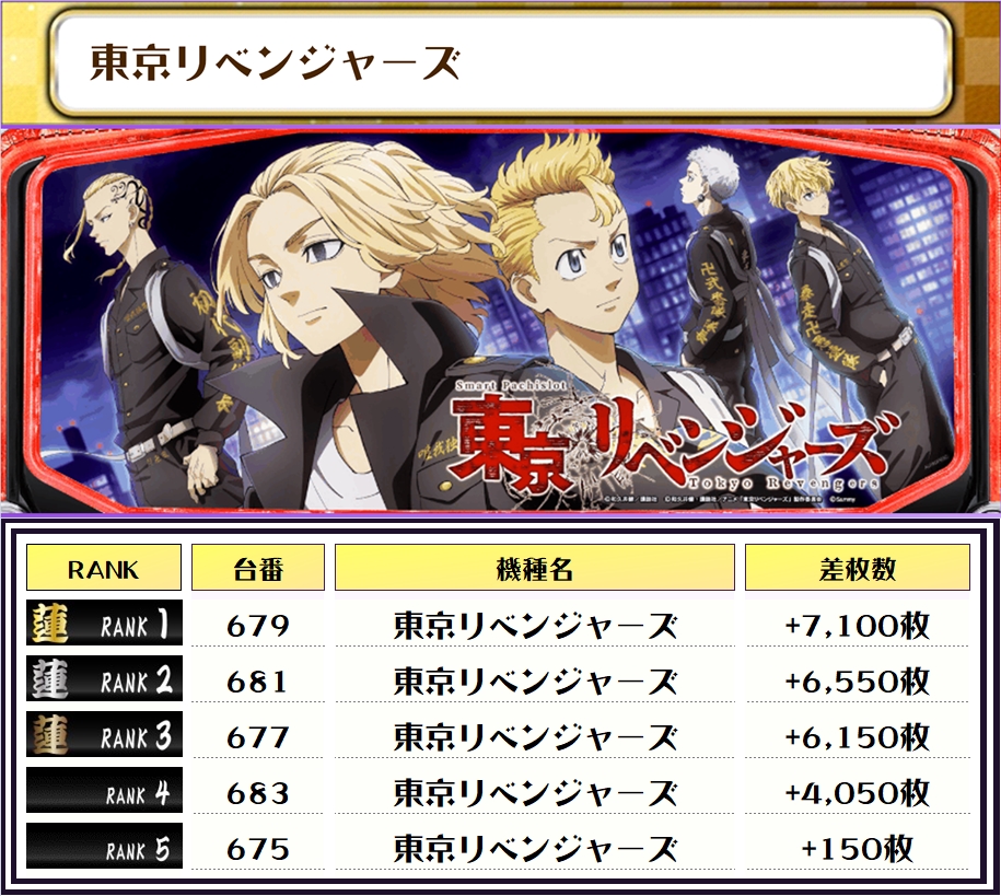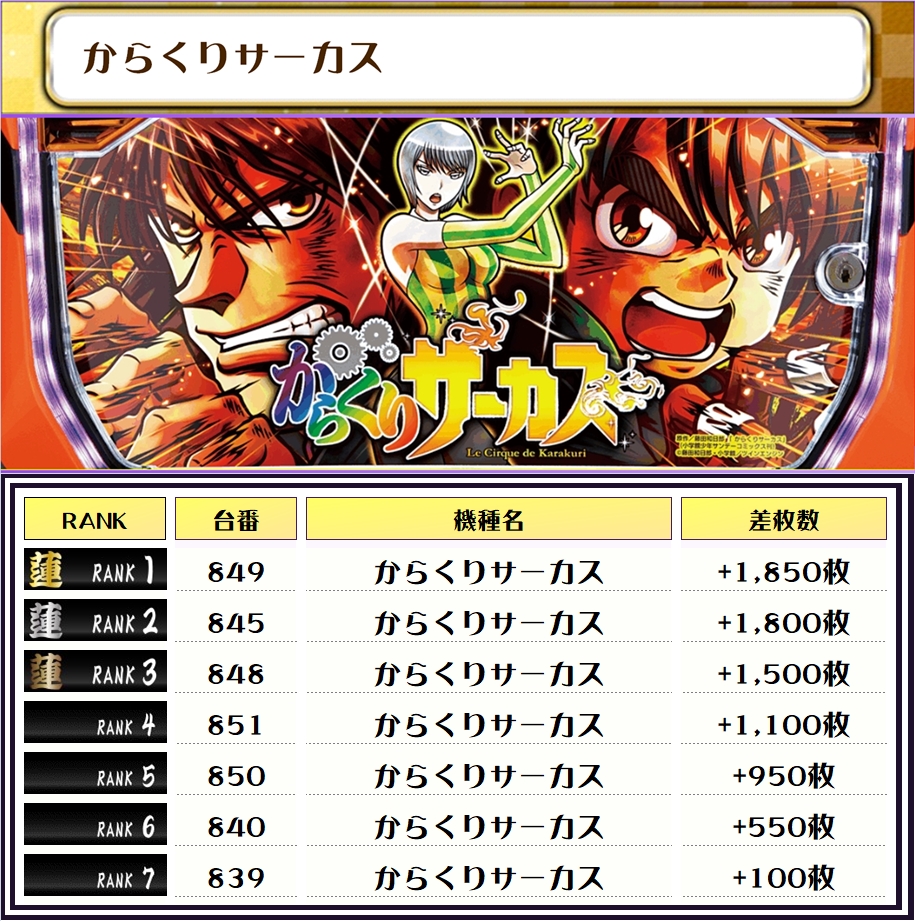 続いては【店内全台の差枚ランキング】をご覧ください!