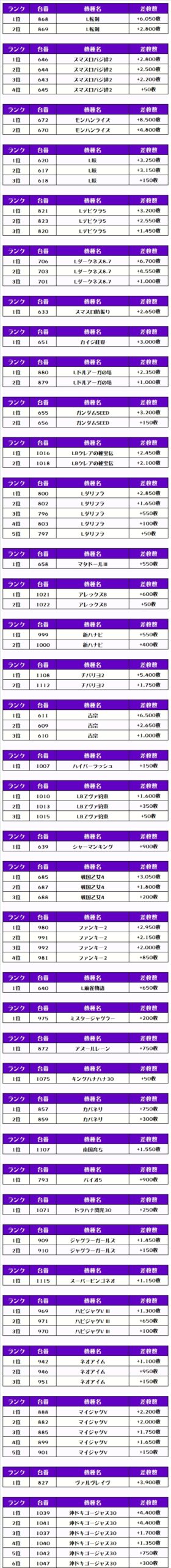 続いて2位は【スマスロ北斗の拳・749番台】の+10,700枚、3位には【モンハンライズ・672番台】の+8,500枚がランクインしていますっ